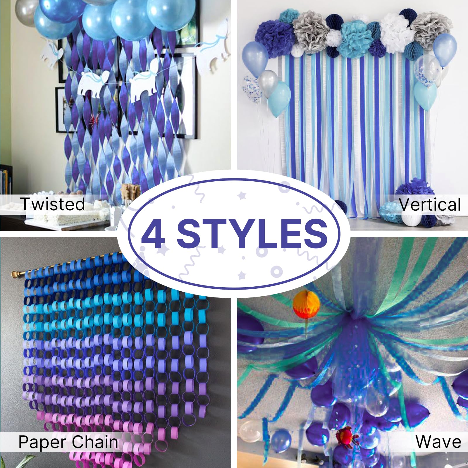 PartyWoo Crepe Paper Streamers 4 Rolls 328ft, Pack of Crepe Paper Navy Streamers Party Decorations, Crepe Paper for Birthday Decorations, Party Decorations, Wedding Decorations (1.8 in x 82 Ft/Roll)