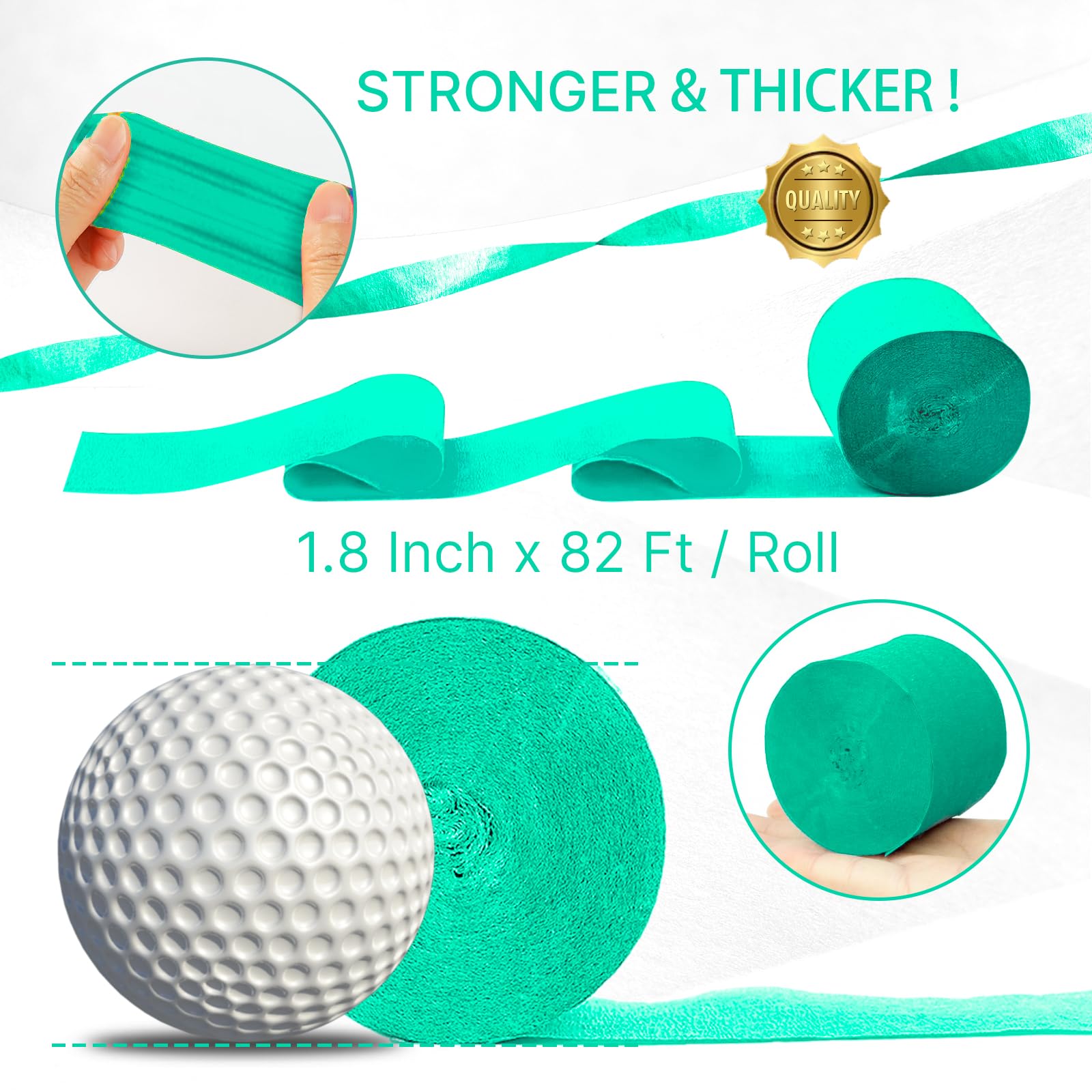 - Package Included:You will receive 4 precisely rolled party crepe paper in mint green and teal colors, each roll is 1.8 inch x 82 ft, these crepe paper rolls are enough for your baby shower decoration, birthday decoration and engagement decoration needs