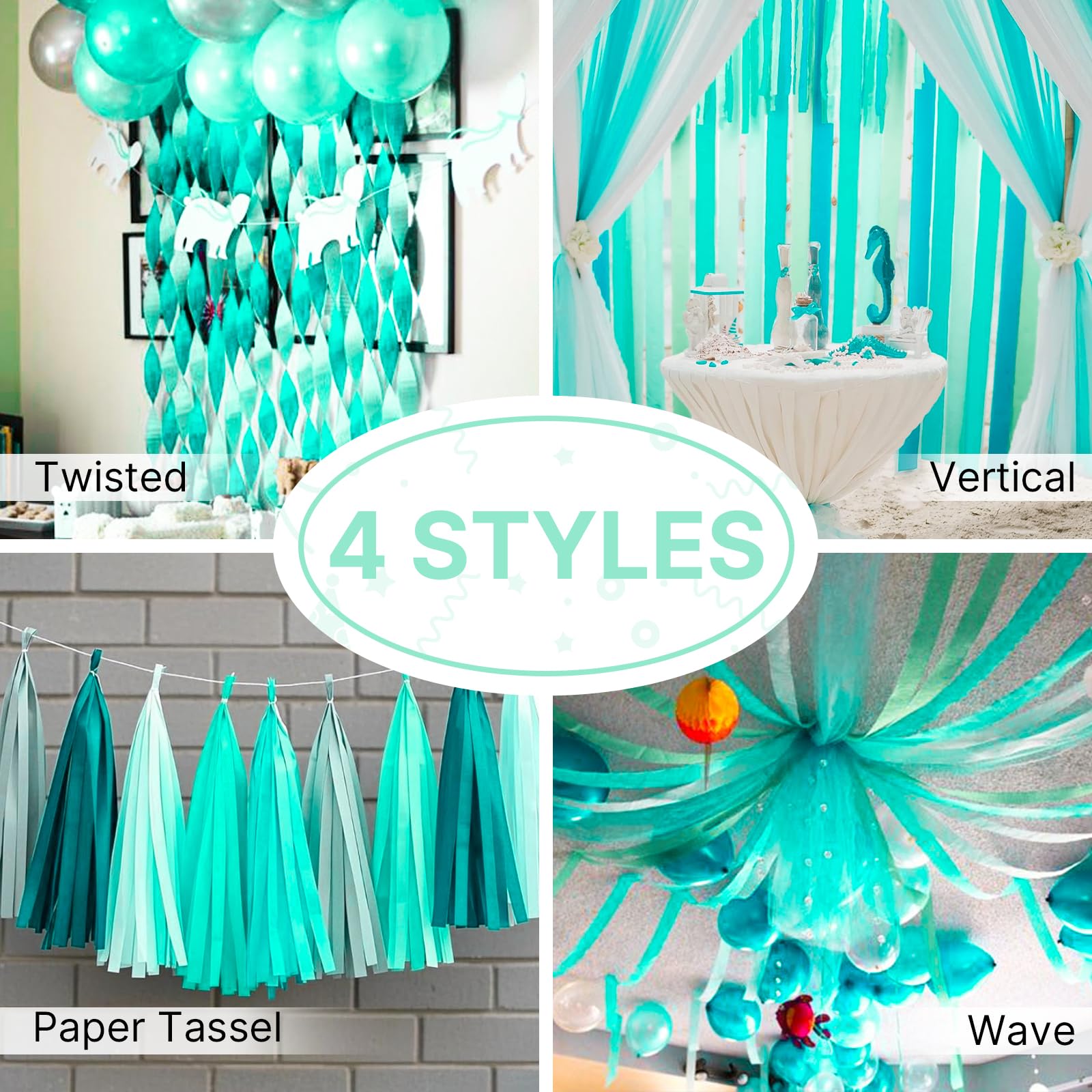 PartyWoo Mint Green Crepe Paper Streamers, 4 Rolls of 328ft for Party, Wedding, Birthday, Baby Shower Decorations by PartyWoo