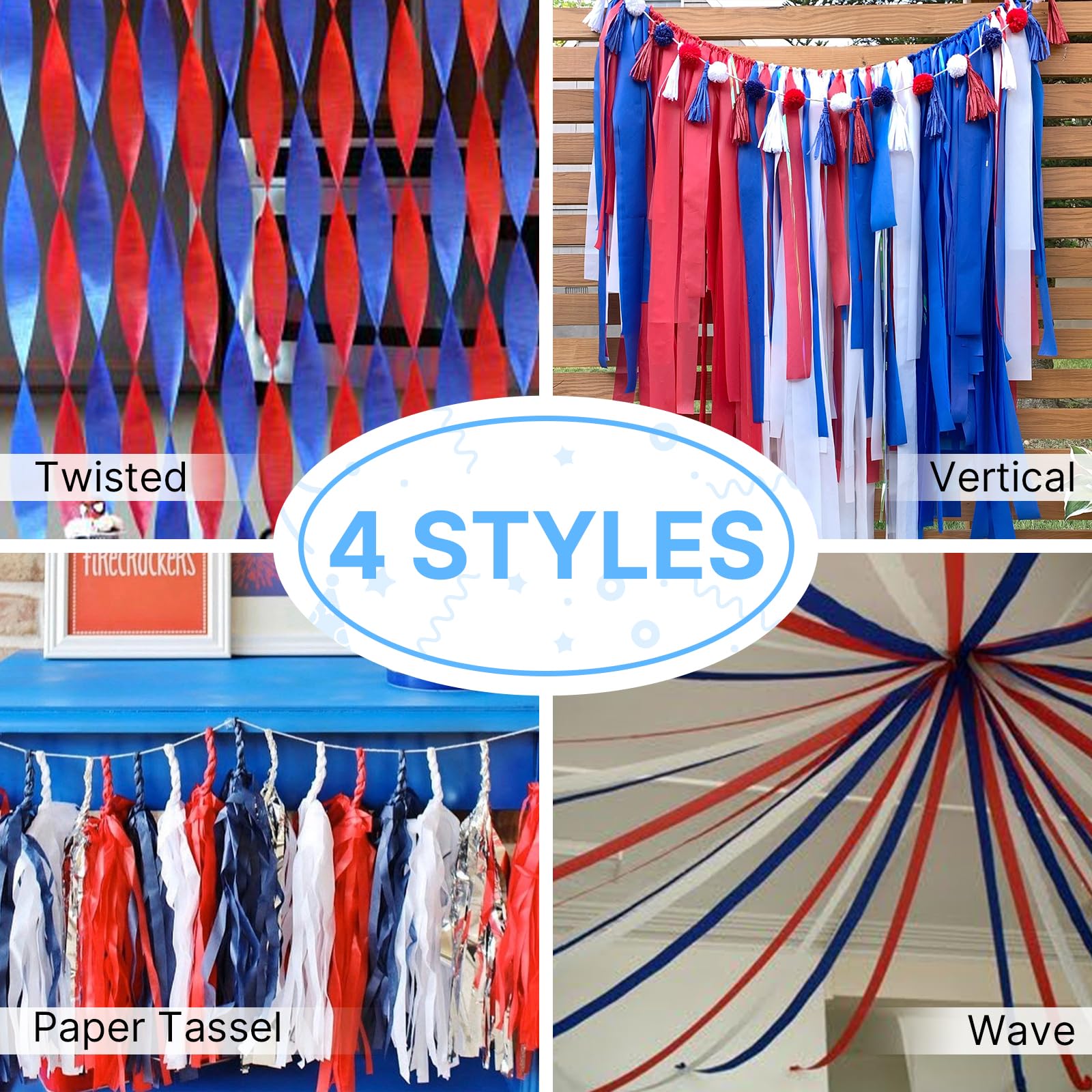 - Complete Your Party Decorations Vision Effortlessly:Achieve cohesive and beautiful birthday, baby shower or gender reveal decorations with ease! Pair these red and blue crepe paper streamers with other decorations to make your event more bright
