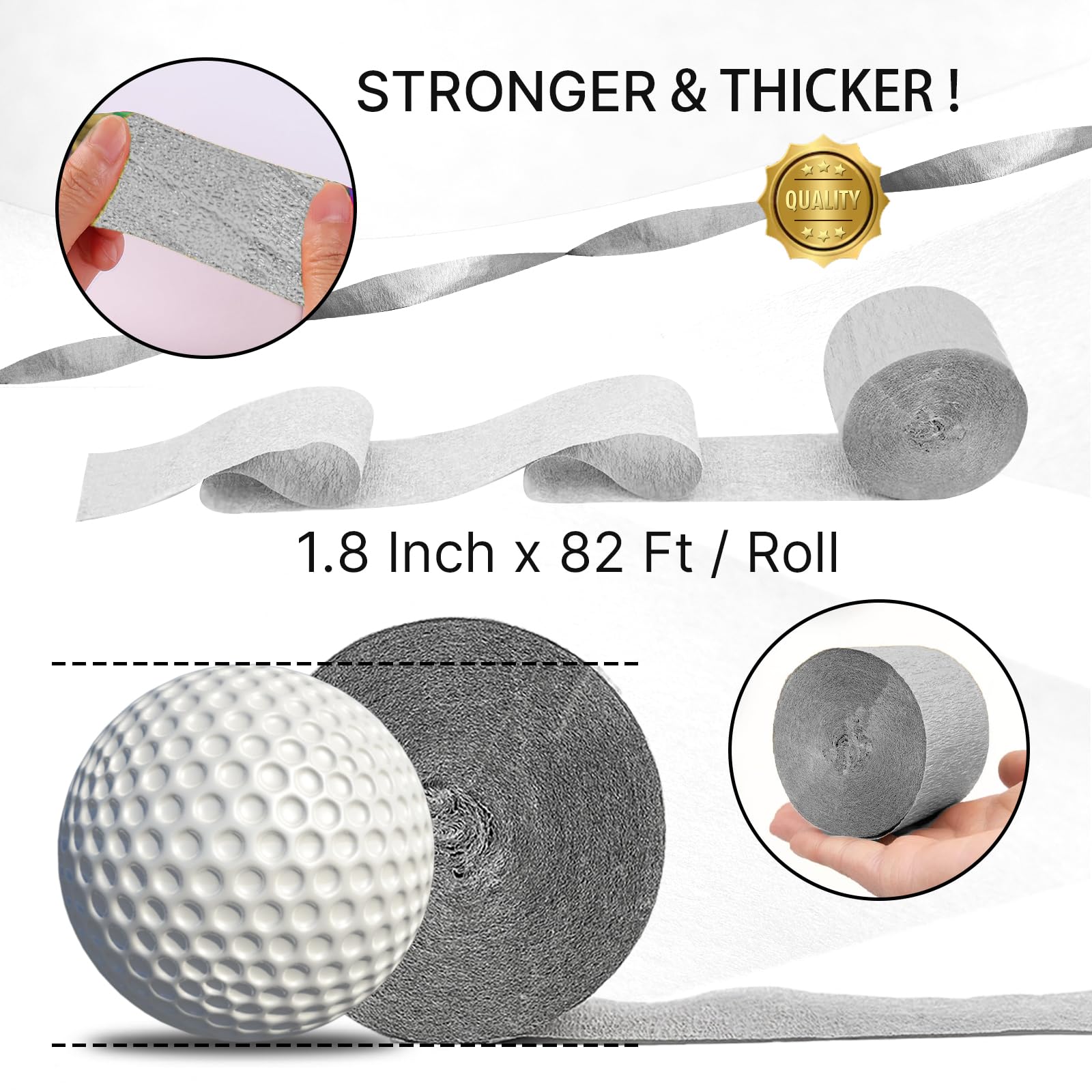 - Package Included:You will receive 4 precisely rolled party crepe paper in silver colors, each roll is 1.8 inch x 82 ft, these silver crepe paper streamer rolls are enough for your baby shower decoration, wedding and engagement decoration needs