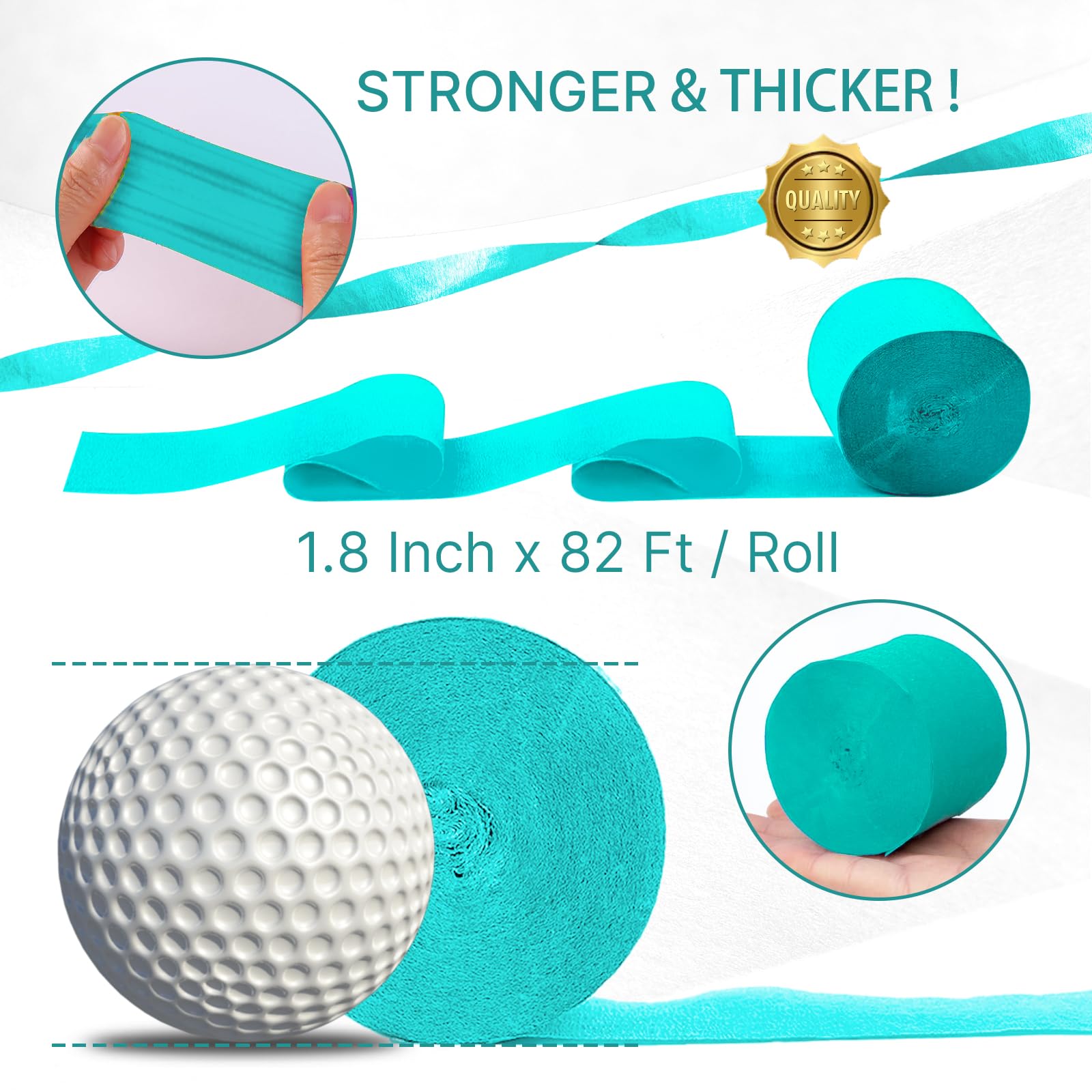 - Package Included:You will receive 4 precisely rolled party crepe paper in teal colors, each roll is 1.8 inch x 82 ft, these turquoise crepe paper streamer rolls are enough for your baby shower decorations, wedding and engagement decoration needs