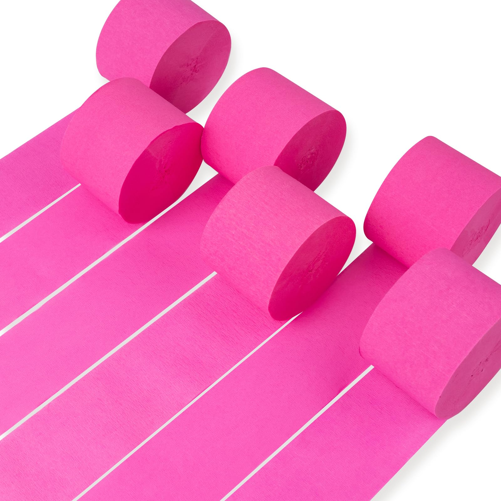 PartyWoo Crepe Paper Streamers 6 Rolls 492ft, Pack of Hot Pink Party Streamers Party Decorations, Crepe Paper for Birthday Decorations, Party Decorations, Wedding Decorations (1.8 in x 82 Ft/Roll)