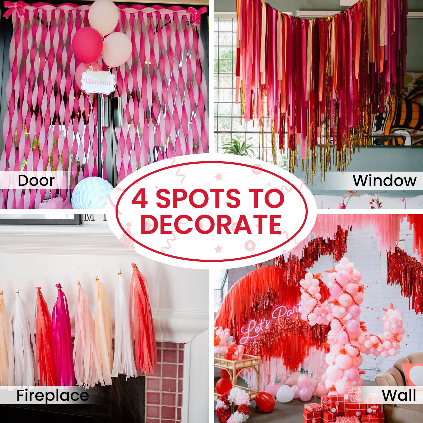 PartyWoo Pink Crepe Paper Streamers 6 Rolls 492 ft Pack of Light and Hot Pink Red White Crepe Paper Rolls for Baby Shower Valentine's Day Wedding Birthday Party Decorations (1.8 Inch x 82 Ft/Rolls)