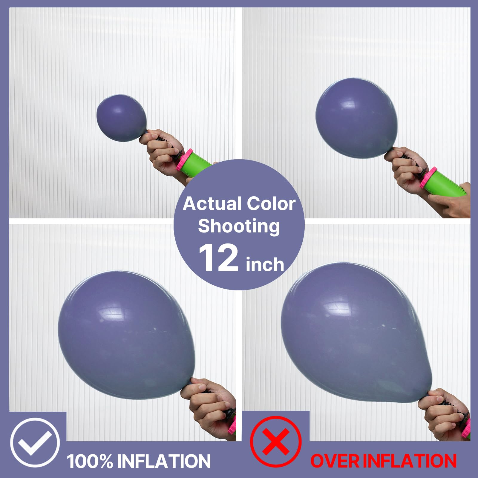 - Attention & Warning: Please DO NOT overfill the dusty blue balloons and also avoid sunburn, overheat, pointed object and excessive friction. Control the amount of air inflated into each balloon to achieve your ideal balloon size and widely used in party.