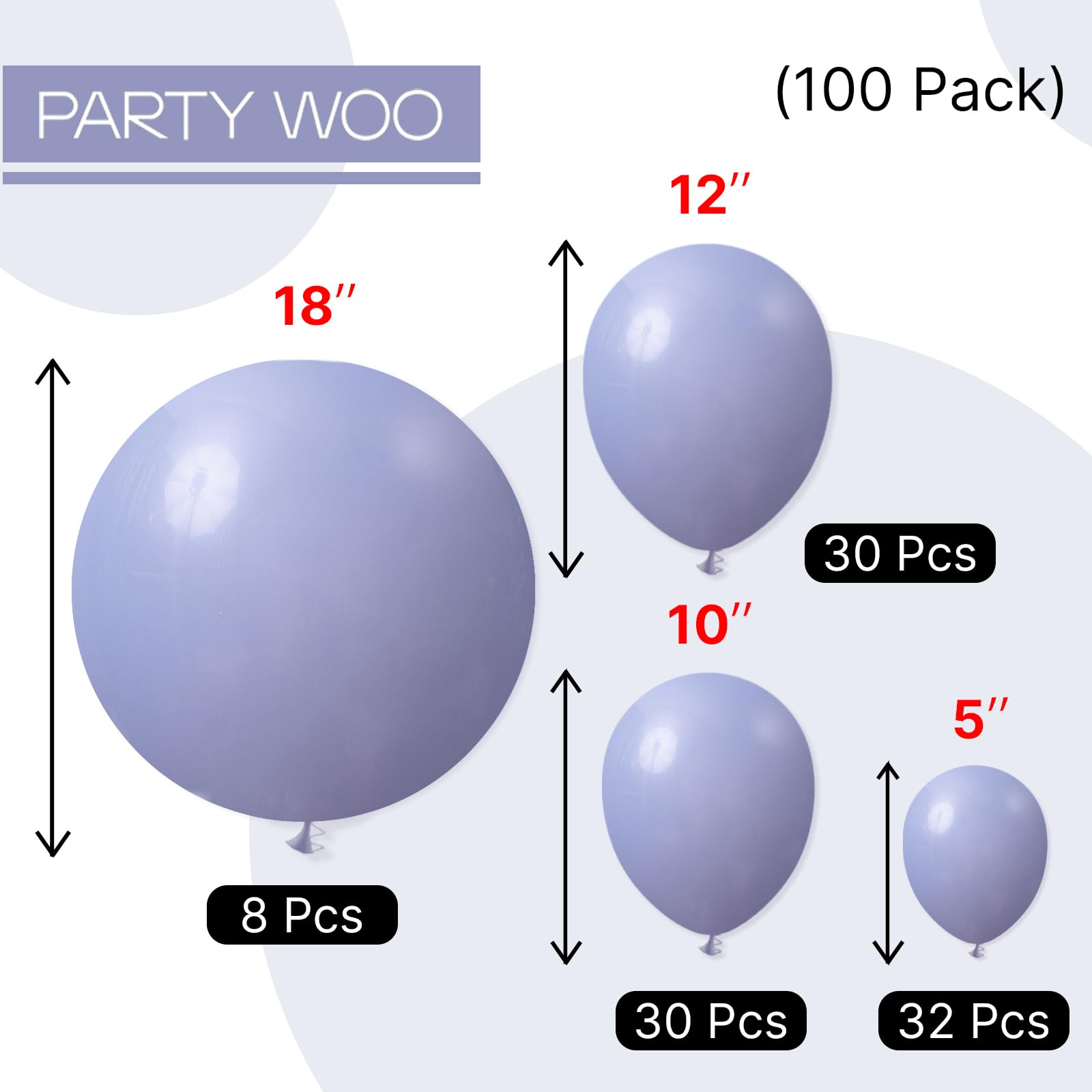 PartyWoo Dusty Blue Balloons 100pcs Different Sizes Pack of 18 12 10 5 Inch Boho Dusty Purple Muted Lavender Balloon Arch Kit for Baby Shower Anniversary Graduation Birthday Party Decorations Blue-F16