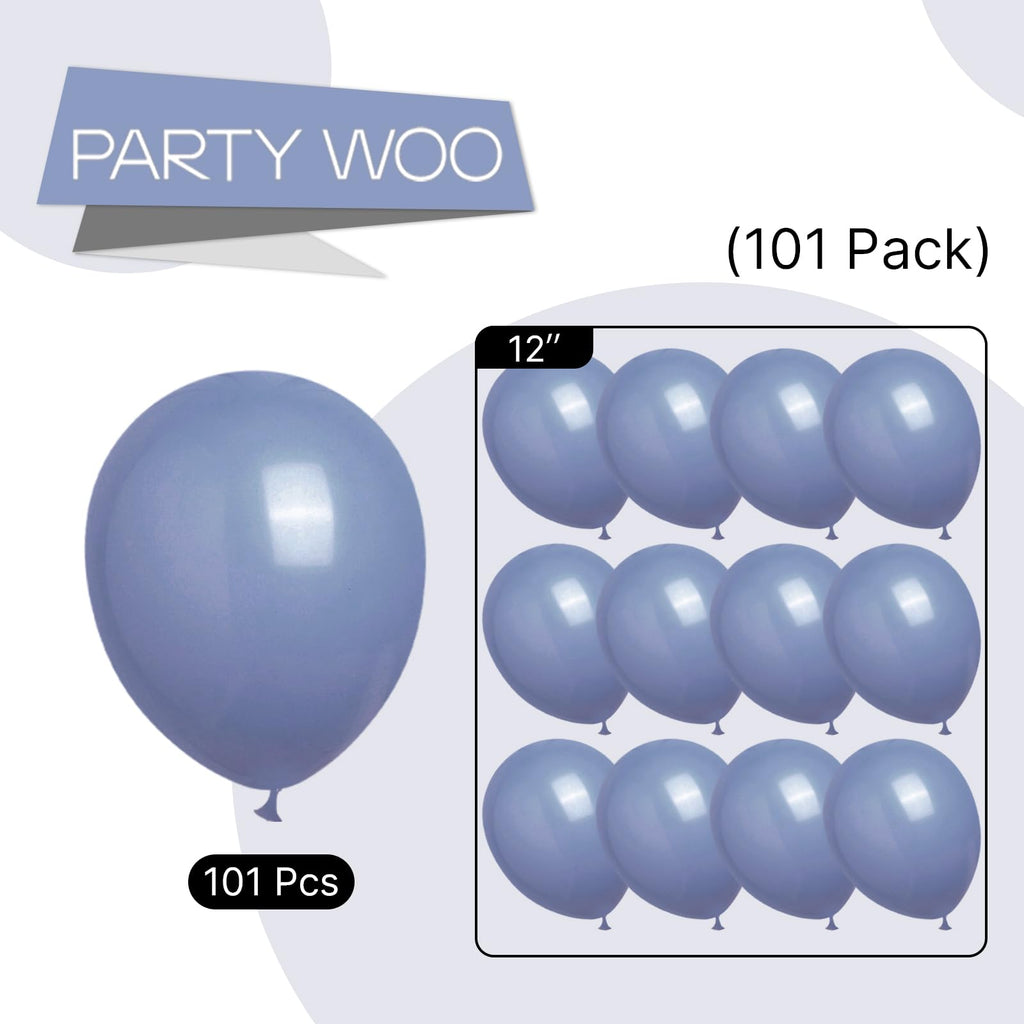 PartyWoo Dusty Blue Balloons 101 pcs 12 Inch Boho Blue Latex Helium Balloons for Graduation Wedding Baby Shower Gender Reveal Anniversary Birthday Party Decorations Blue-F16