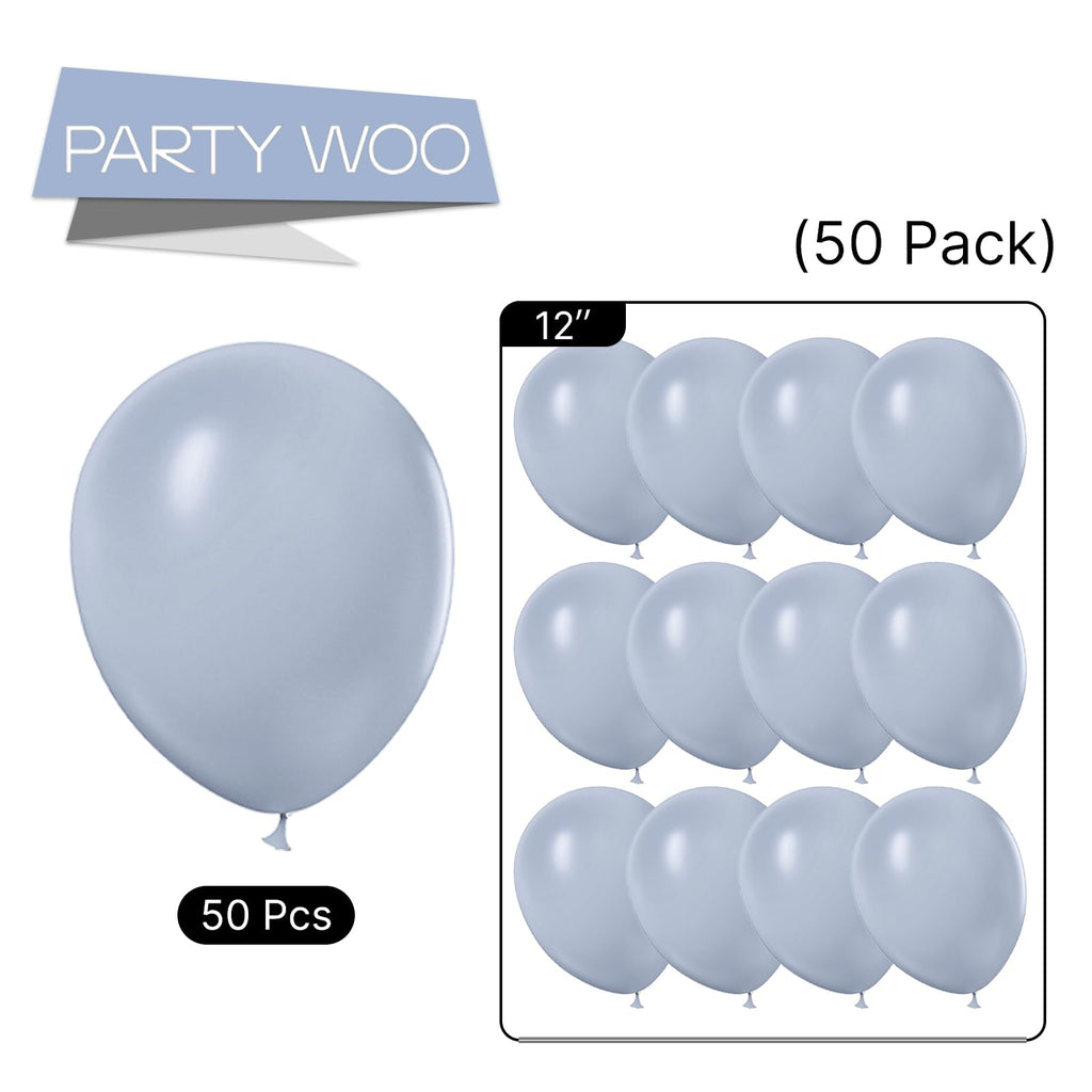 - 50 PCS LIGHT BLUE GREY BALLOONS PACK: Package includes 12 inch balloons (50 pcs), ideal birthday decorations, party decorations, wedding decorations , baby shower decorations