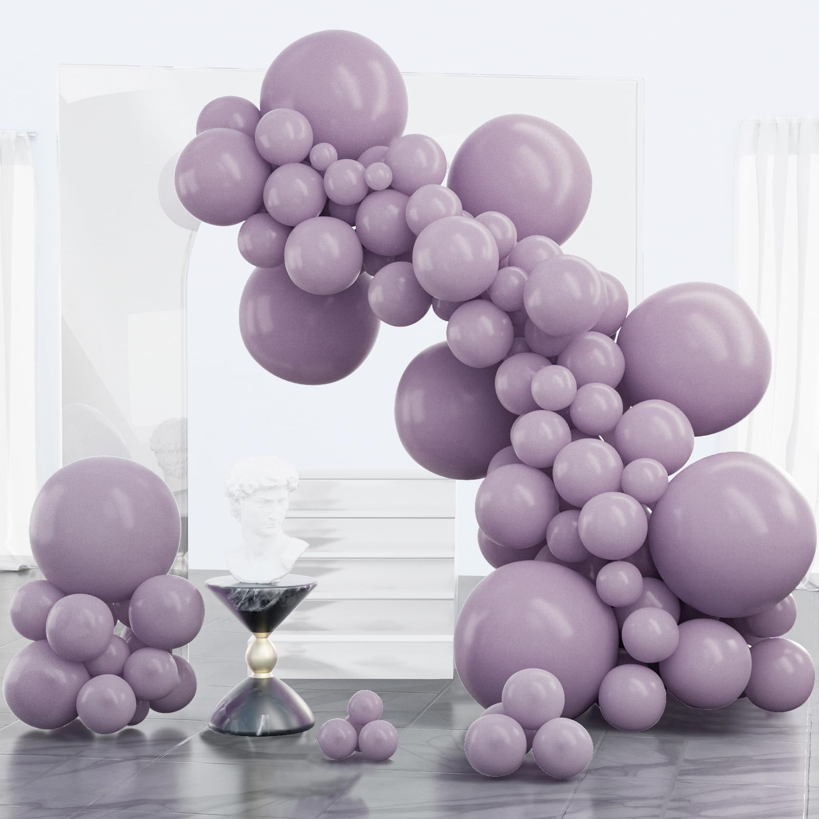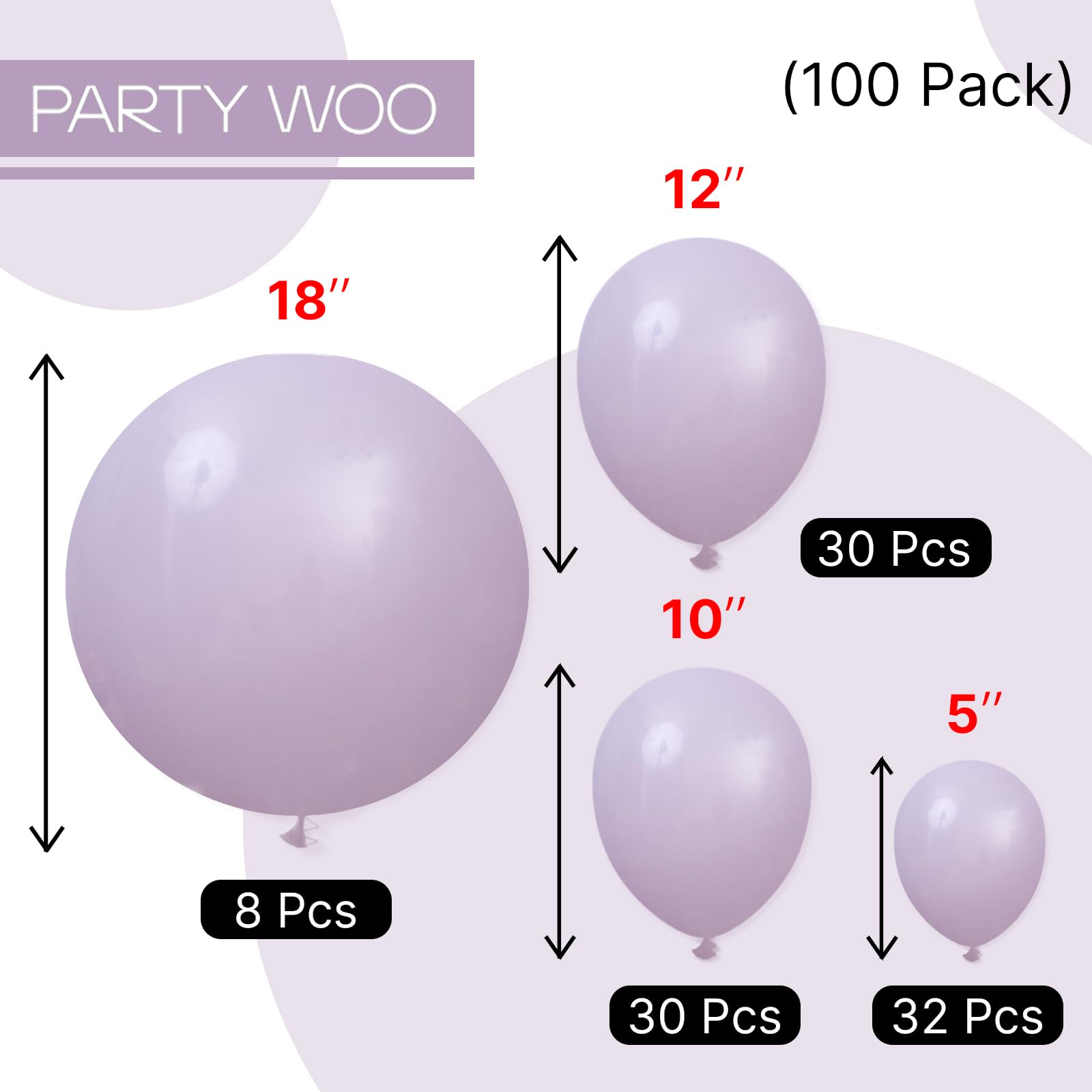 - Package includes: 18 inch dusty purple balloons (8 pcs), 12 inch dusty purple balloons (30 pcs), 10 inch dusty purple balloons (30 pcs), 5 inch dusty purple balloons (32 pcs), pay attentions that 5 inch balloons could NOT float when inflated with HELIUM.