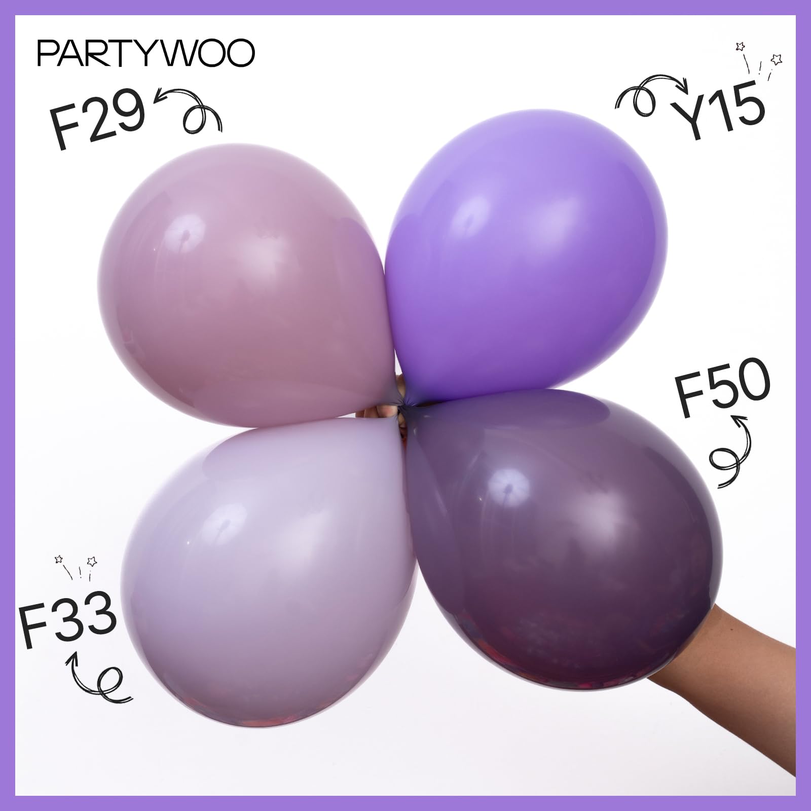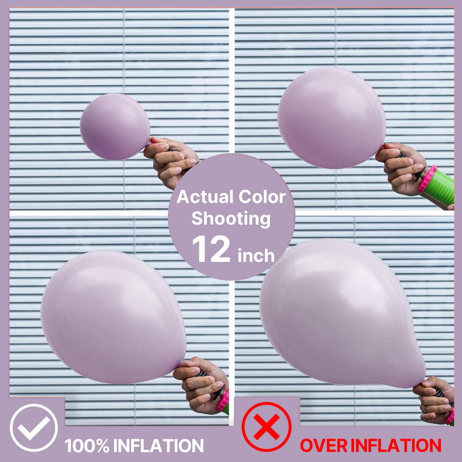- Attention & Warning: Please DO NOT overfill the dusty purple balloons and also avoid sunburn, overheat, pointed object and excessive friction. Control the amount of air inflated into each balloon to achieve your ideal balloon size and used in party.