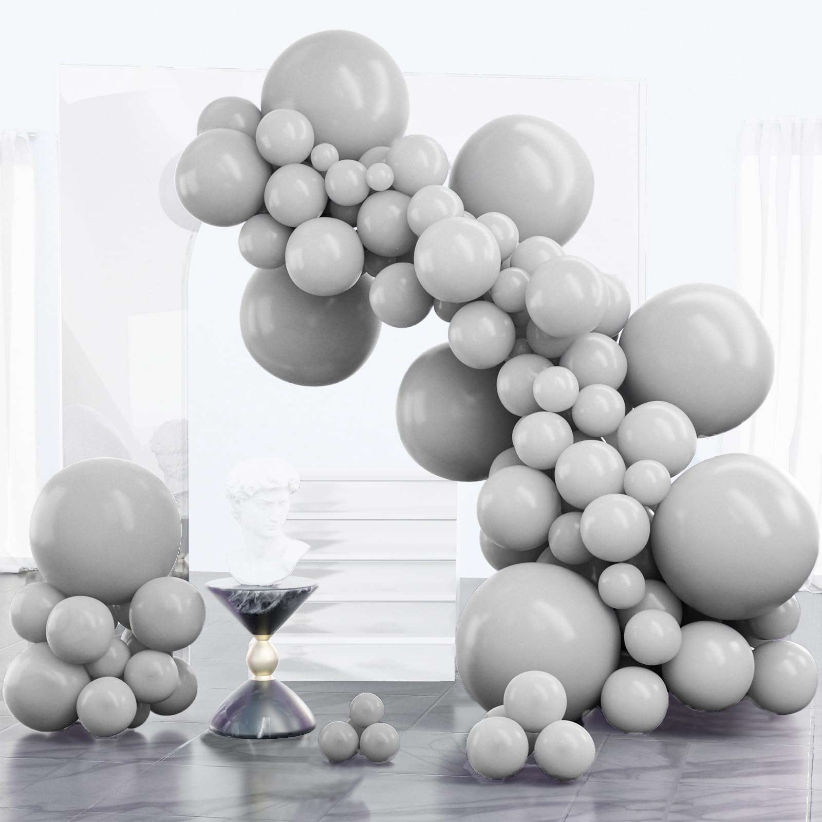 - 100 PCS GRAY BALLOONS DIFFERENT SIZES: Package includes 18 inch balloons (8 pcs), 12 inch balloons (30 pcs), 10 inch balloons (30 pcs), 5 inch small balloons (32 pcs)
