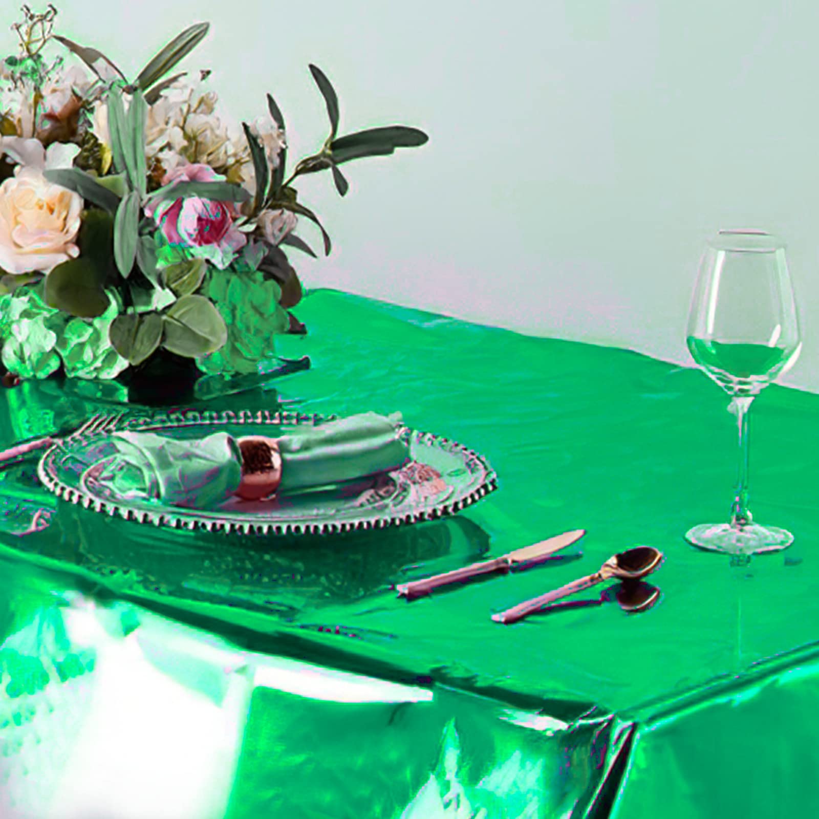 PartyWoo 3 pcs Green Foil Table Cover, 54 x 108 Inch Rectangle Waterproof Tablecloth for 6 to 8 Foot Tables, Disposable Plastic Party Tablecloth for Christmas Graduation Birthday Party Decorations