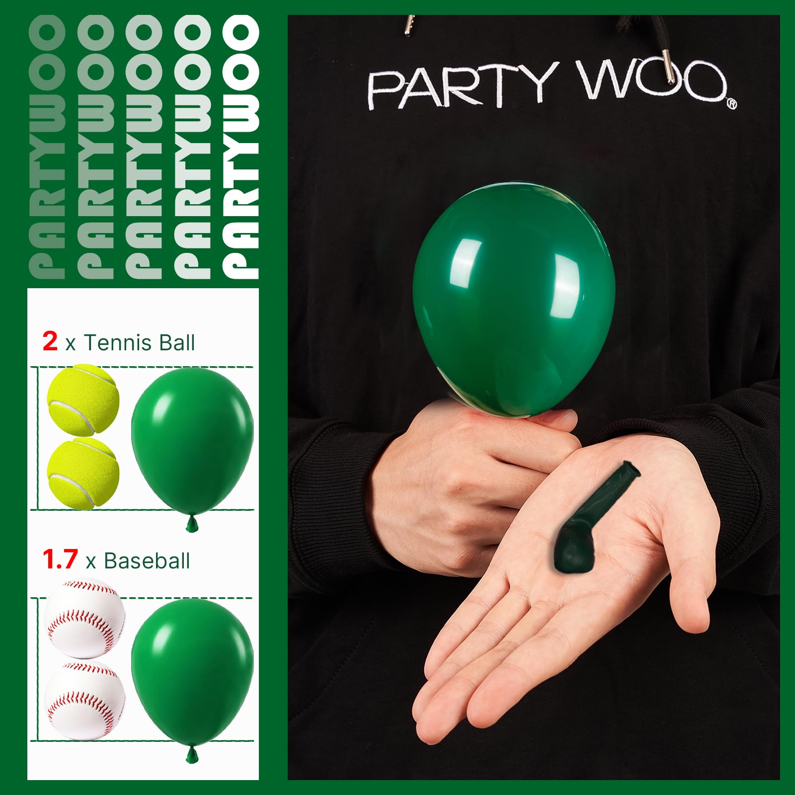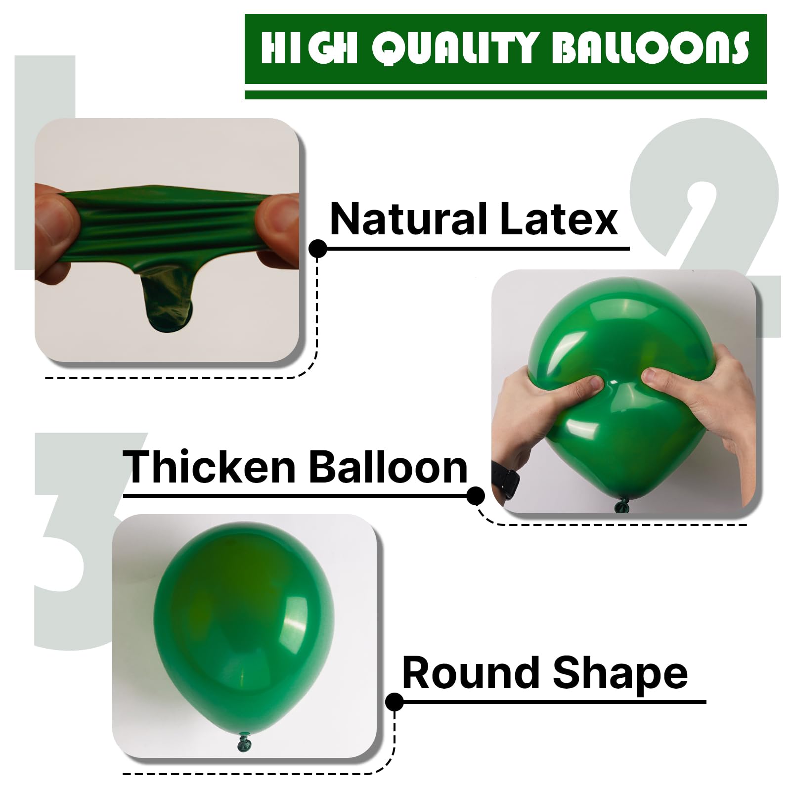 - Attention & Warning: Please DO NOT overfill the dark green balloons and also avoid sunburn, overheat, pointed object and excessive friction. Control the amount of air inflated into each balloon to achieve your ideal balloon size and widely used in party.