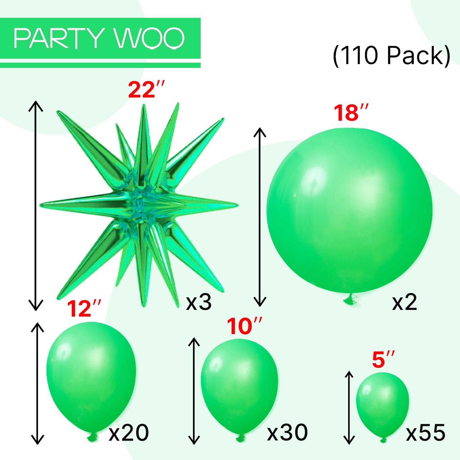 - Package Include:22 inch foil star balloons (3pcs), 18 inch balloons (2pcs), 12 inch balloons (20pcs), 10 inch balloons (30pcs), 5 inch balloons (55pcs), ribbon (1pc) and inflation straw (1pc). Which is enough for your birthday and party decorations