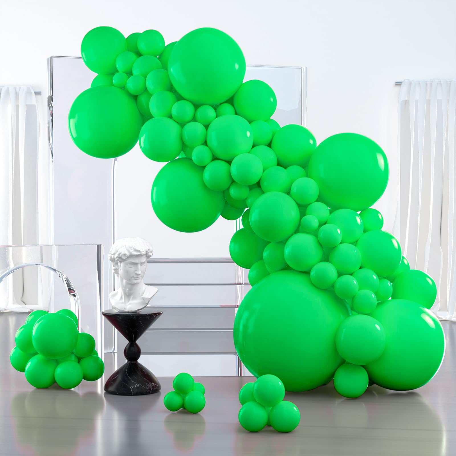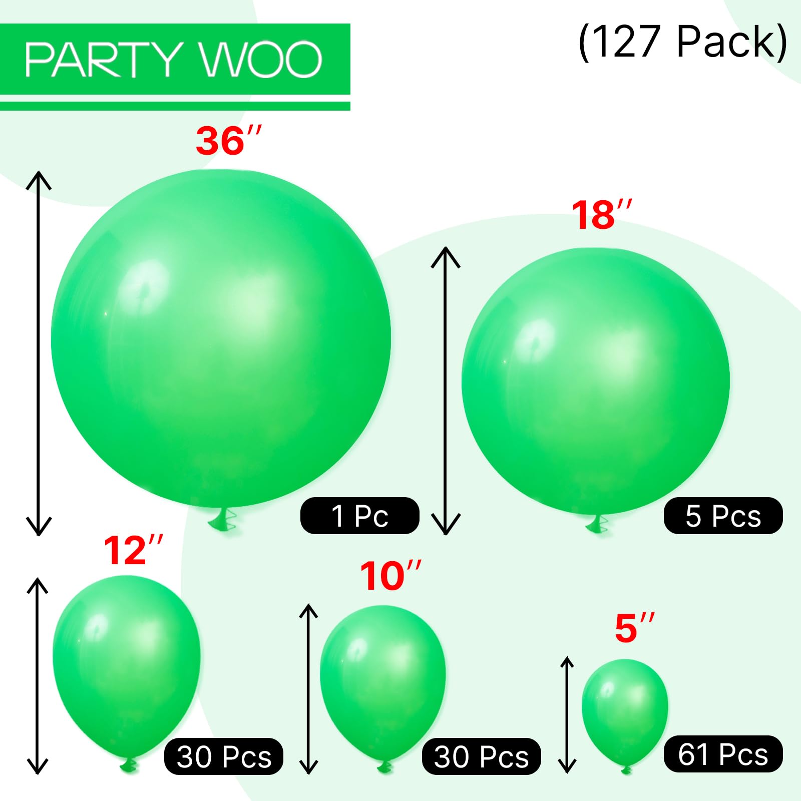 - Package includes: 36 inch green balloons (1pcs), 18 inch green balloons (5pcs), 12 inch green balloons (30pcs), 10 inch green balloons (30pcs), 5 inch green balloons (61pcs). Pay attention the 5 inch balloons could NOT float when inflated with HELIUM.