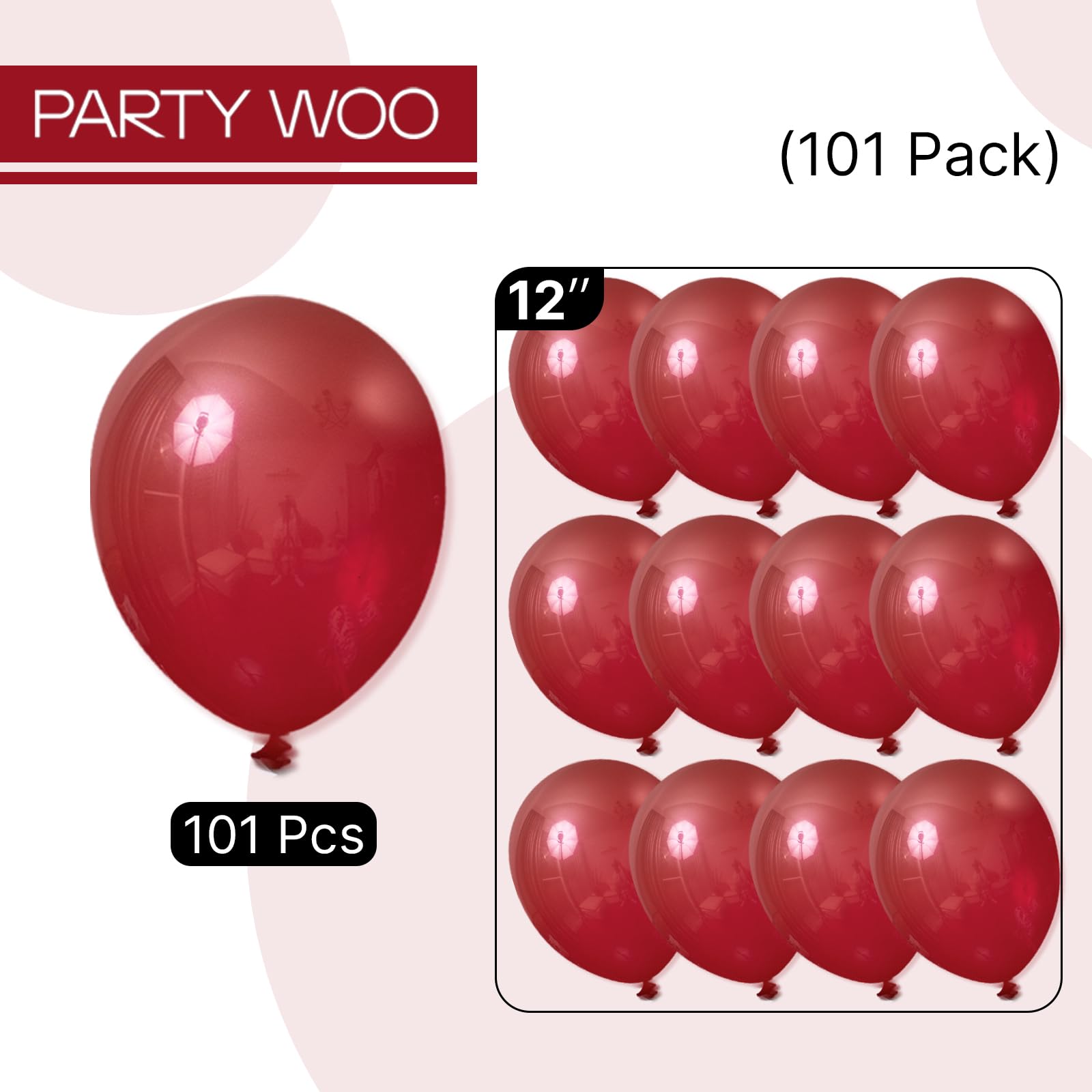 PartyWoo Burgundy Balloons 101pcs 12 Inch Dark Red Maroon Ruby Red Latex Helium Balloons for Graduation Valentine's Day Wedding Anniversary Casino Citizenship Christmas Party Decorations Red-Y75