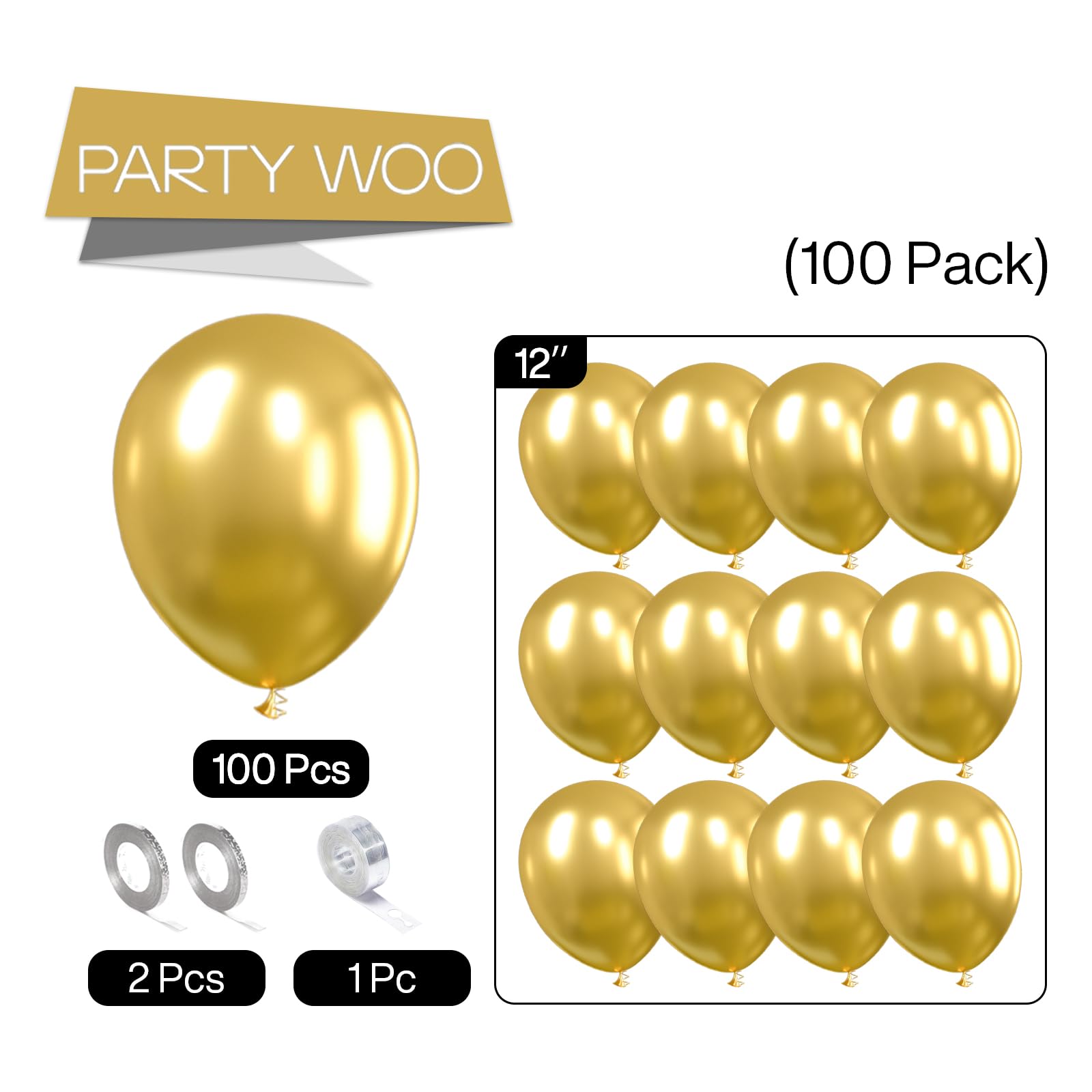 - Package includes: 12 inch gold balloons (100 pcs), in a solid consistent color that brings vibrant energy, can widely used in birthday decorations, wedding decorations, baby shower decorations, and adding a vibrant touch to make your party bright.