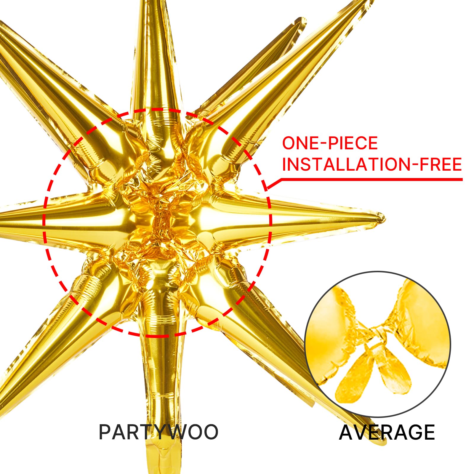 - Easy to Assemble: These star mylar balloons can seal themselves and do not need to be tied. Our explosion star balloons are one-piece and so you don't have to assemble them. In just one minute, the star balloons are completed for party decorations