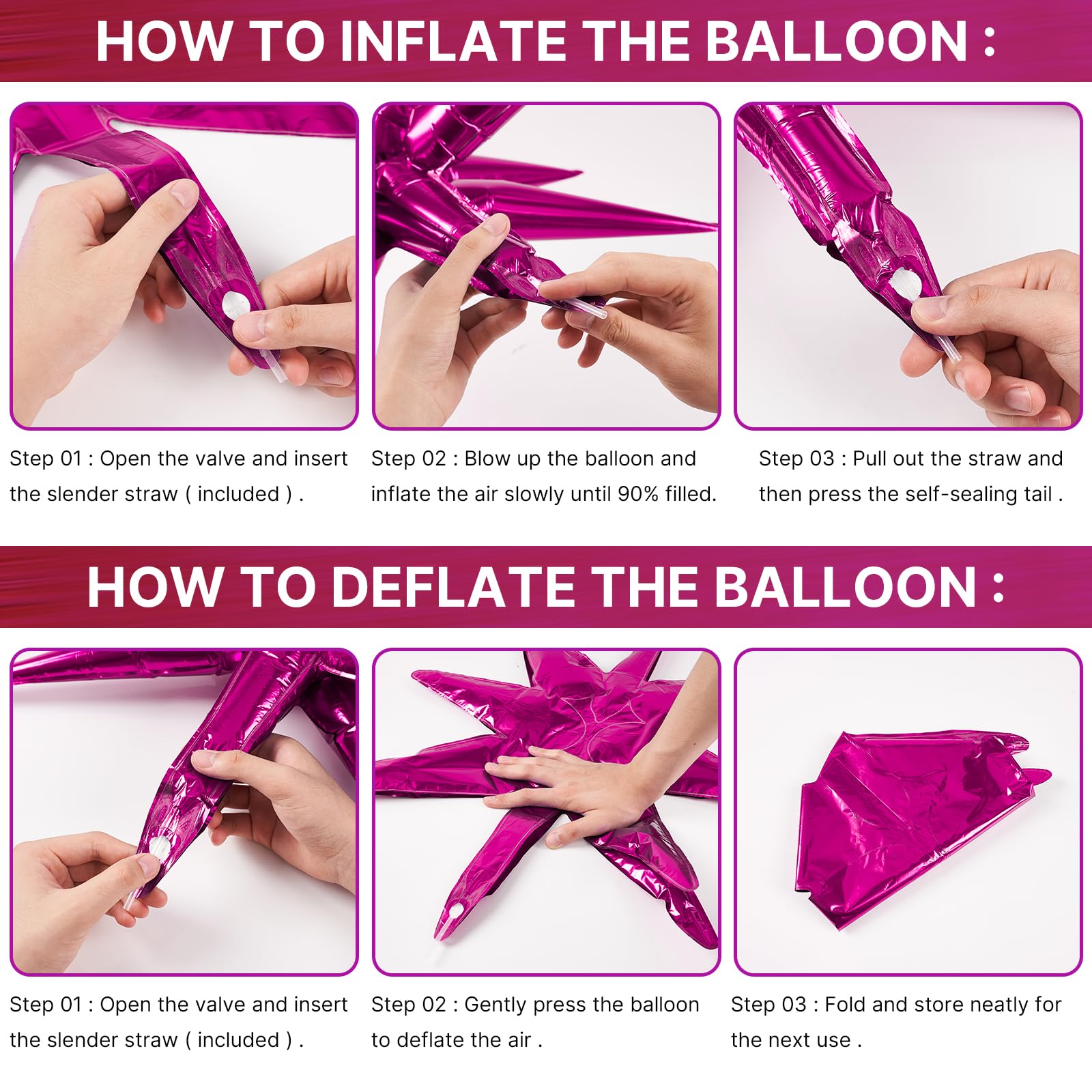 - Easy to Assemble: These star mylar balloons can seal themselves and do not need to be tied. Our explosion star balloons are one-piece and so you don't have to assemble them. In just one minute, the star balloons are completed for party decorations