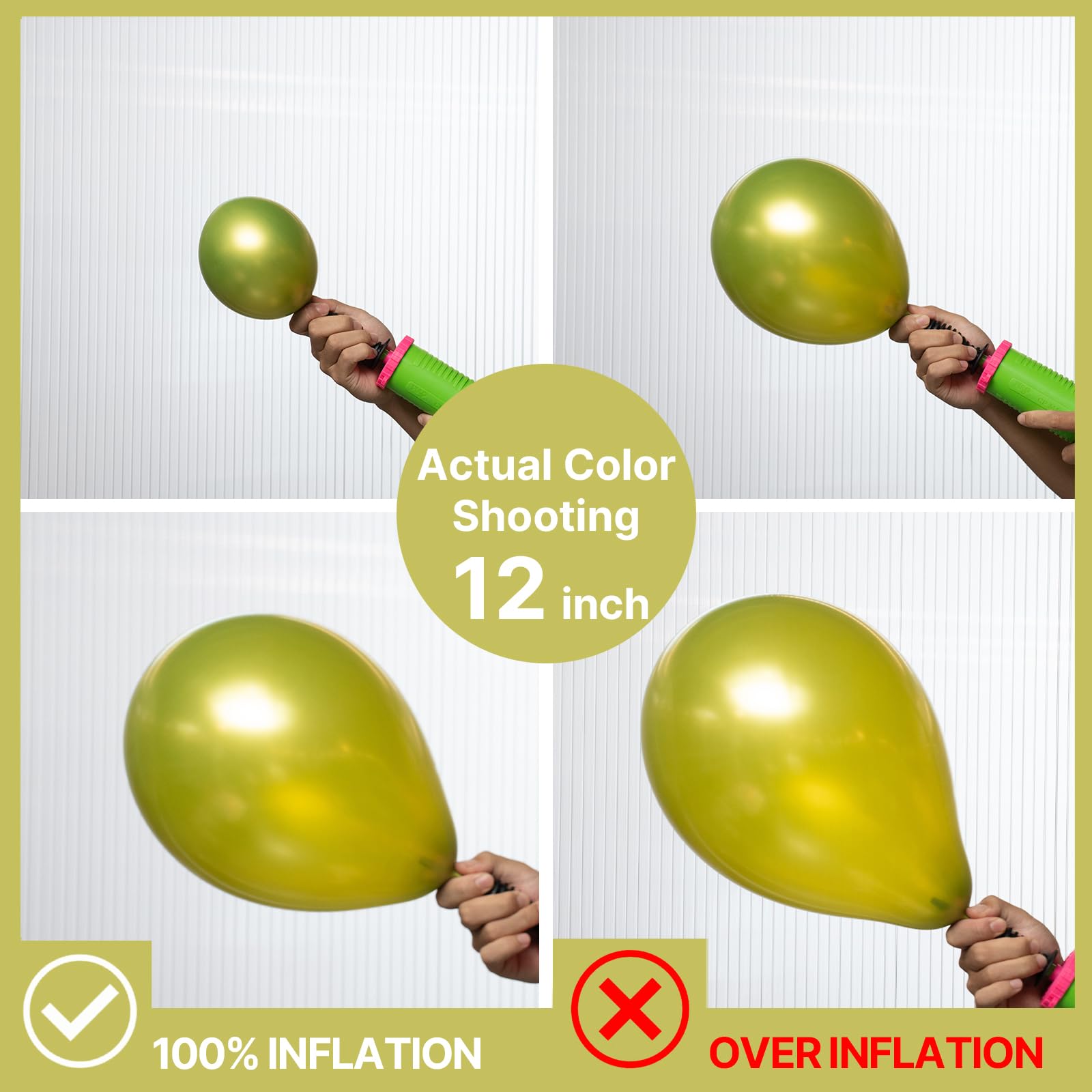 - Attention & Warning: Please DO NOT overfill the metallic green balloons and also avoid sunburn, overheat, pointed object and excessive friction. Control the amount of air inflated into each balloon to achieve your ideal balloon size and used in party.