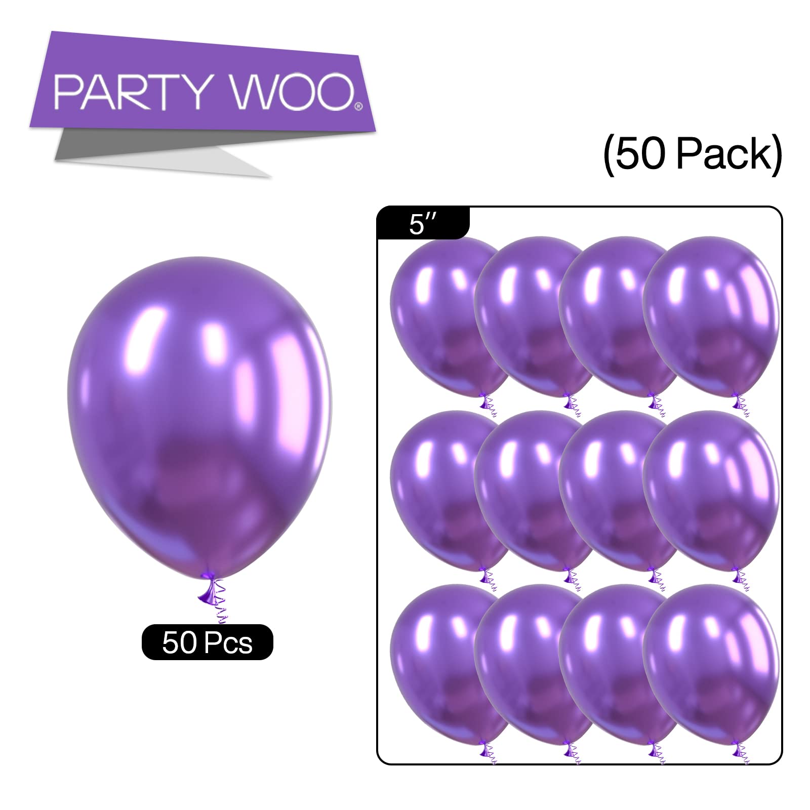 - 50 PCS PURPLE BALLOONS SET: The package comes with 5 inch purple metallic balloons (50 pcs), whose colors are super metallic, vibrant and bright. These purple balloons, balloon pack, metallic balloon, party ballons, balloons metallic, latex balloons are ideal birthday decorations, purple party decorations, wedding decorations