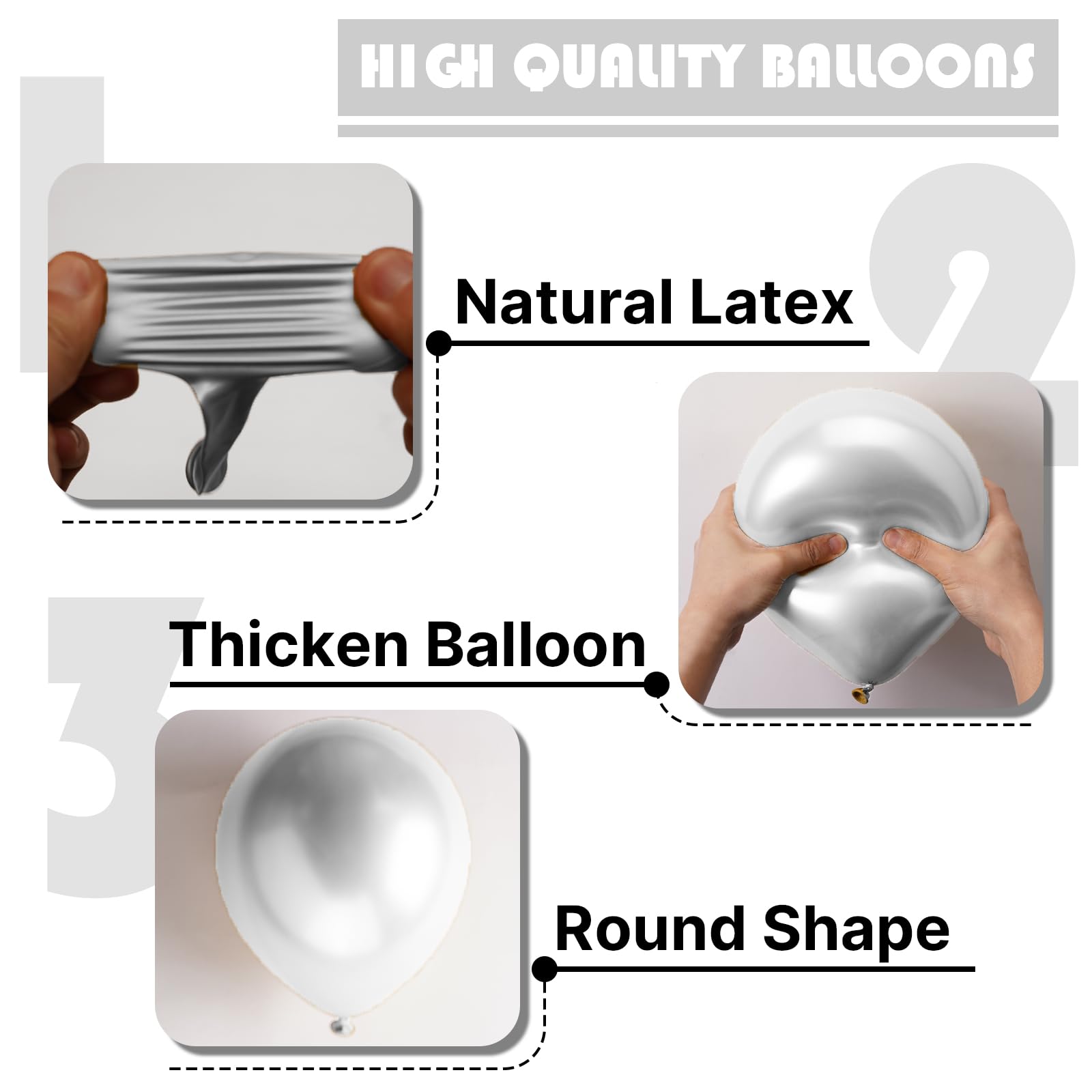 - Thick Durable Latex: These silver balloons are made with high quality thick material, each balloon stays full longer perfect for arches garlands centerpieces. Ensuring your graduation and birthday stays perfect from setup to celebration end.