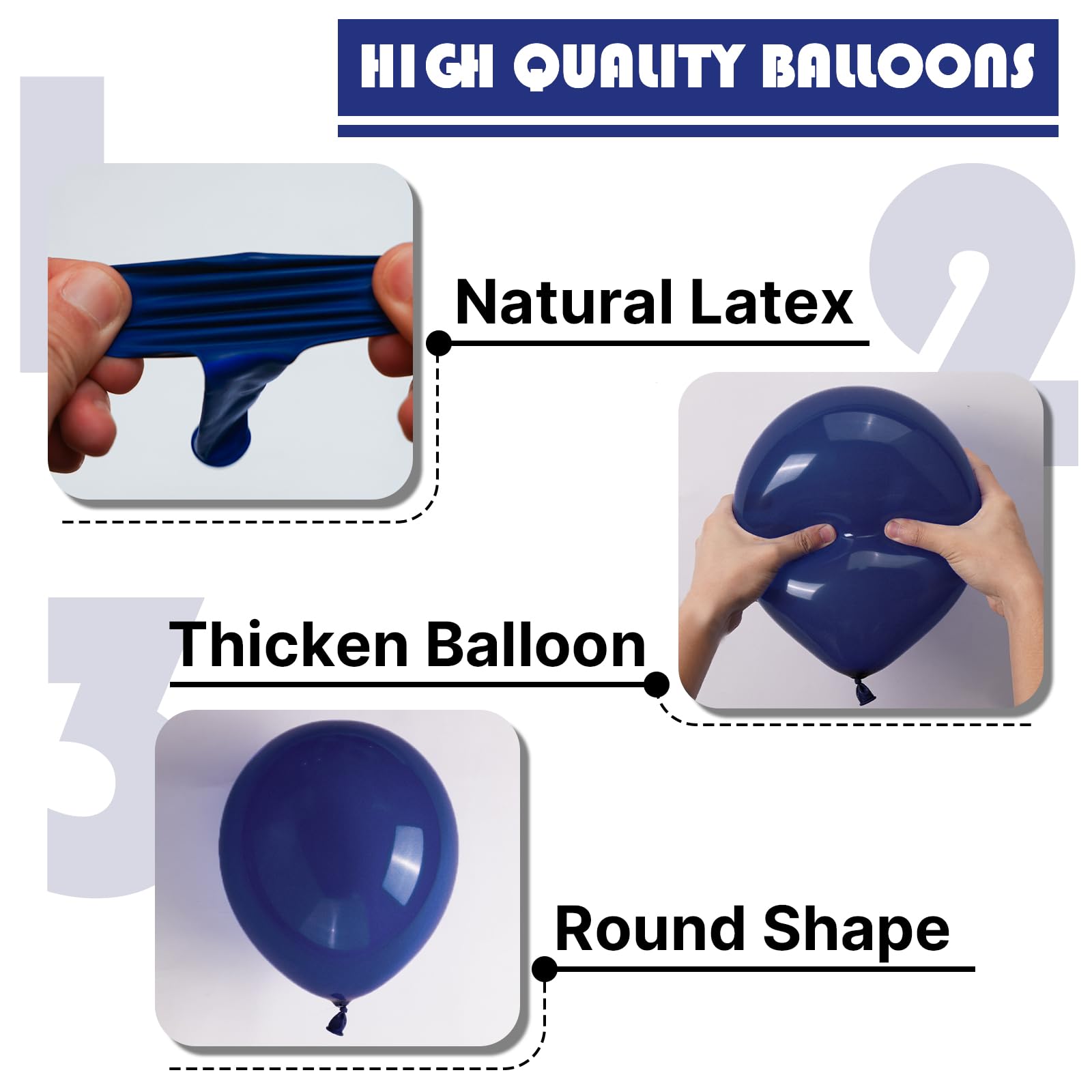 - Thick Durable Latex: These dark blue balloons are made with high quality thick material, each balloon stays full longer perfect for arches garlands centerpieces. Ensuring your graduation, birthday decorations stays perfect from setup to celebration end.