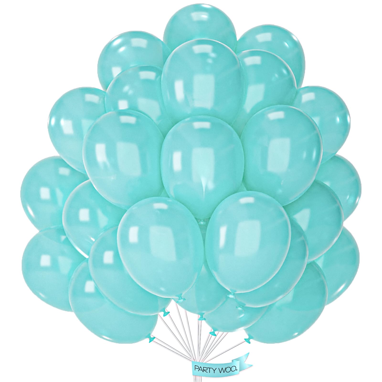 - What To Fill With:These turquoise balloons filled with AIR will stay full for up to 72 hours, and have standard balloon necks, allowing quick inflation. These pearl teal balloons can bringing joy to your birthday party, wedding, baby shower decorations.