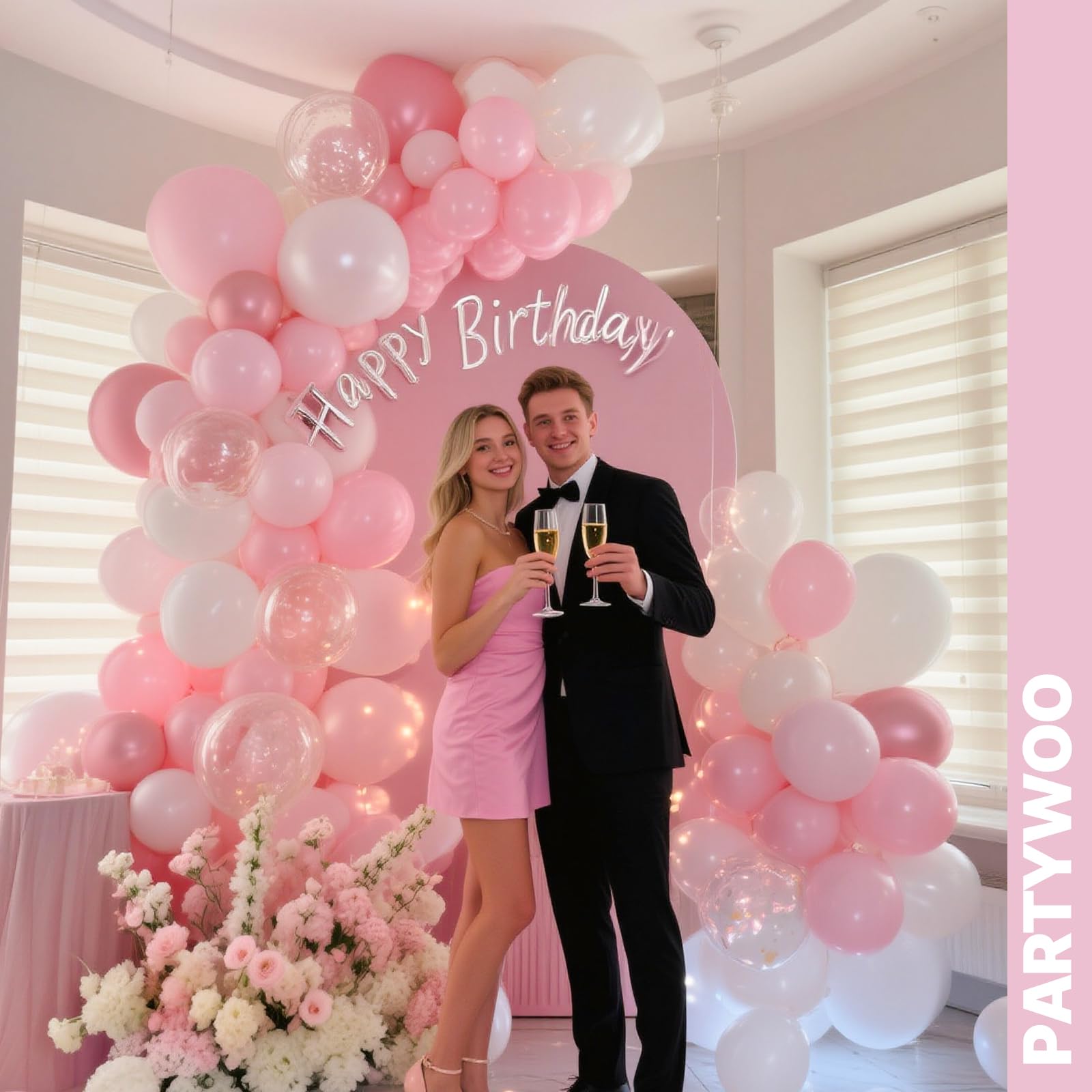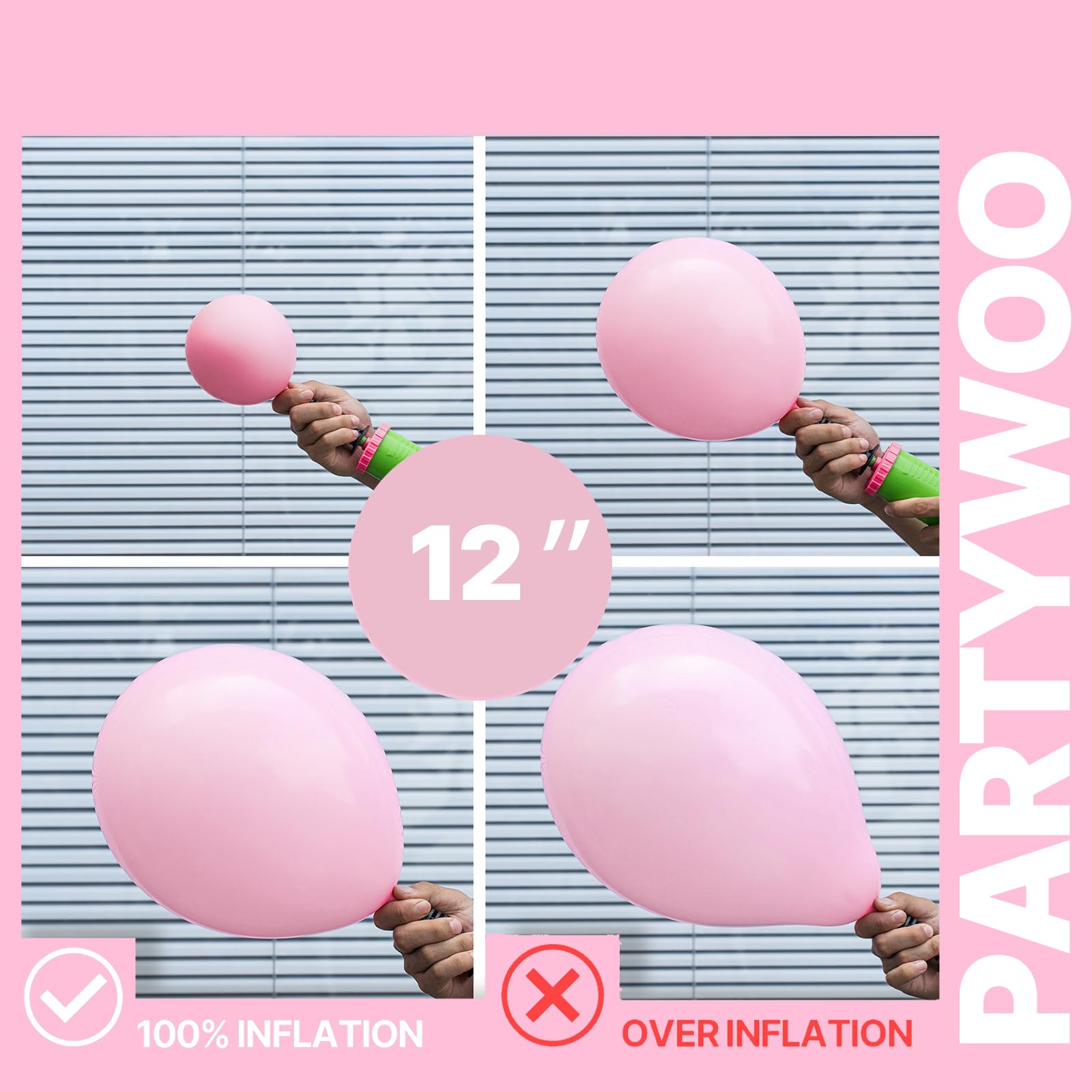 - Attention & Warning: Please DO NOT overfill the pink and white balloons and avoid sunburn, overheat, pointed object and excessive friction. Control the amount of air inflated into each balloon to achieve your ideal balloon size. Enjoy your birthday party.