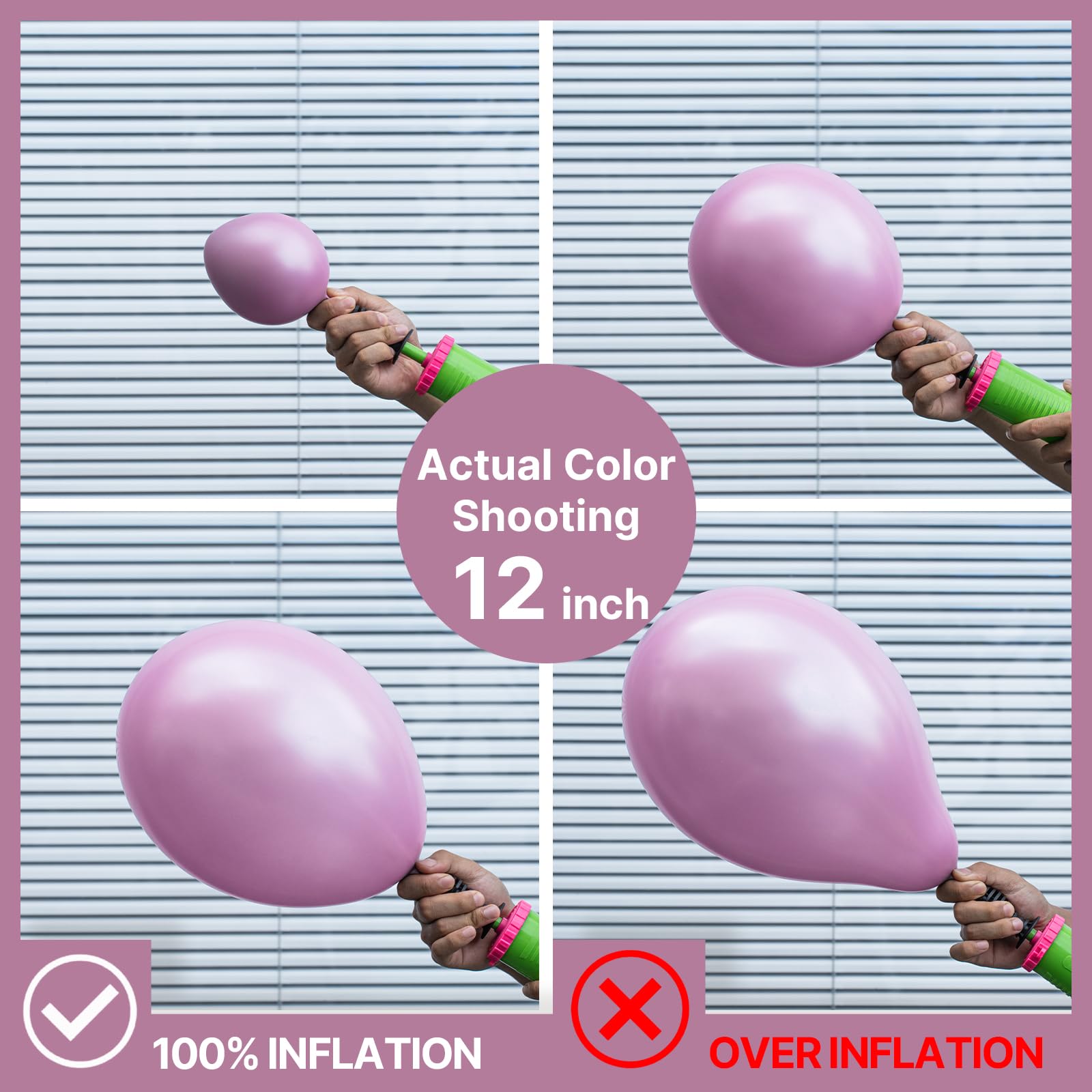 - ATTENTION & WARNING: Please DO NOT overfill the balloons and also avoid sunburn, overheat, pointed object and excessive friction. Control the amount of air inflated into each balloon to achieve your ideal balloon size
