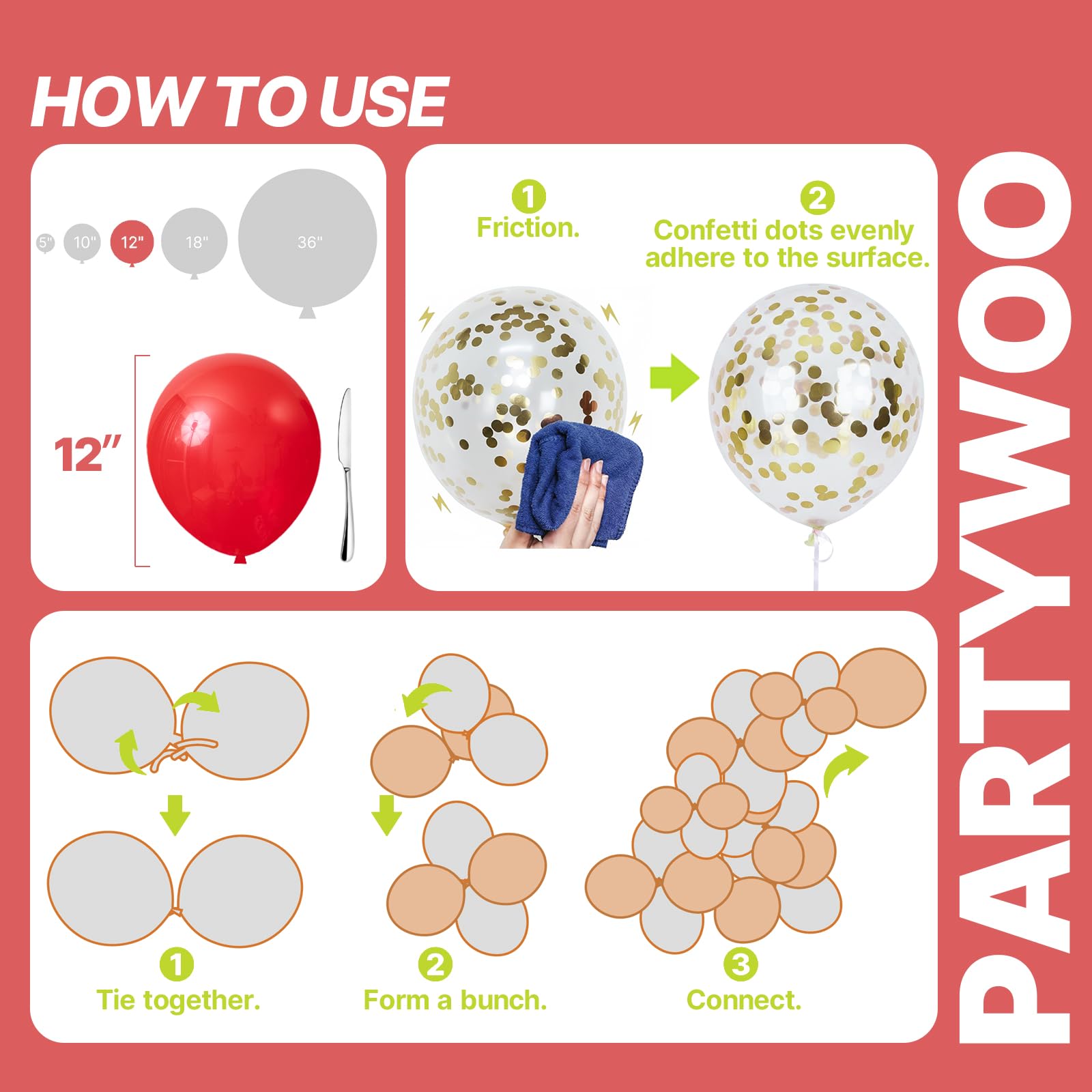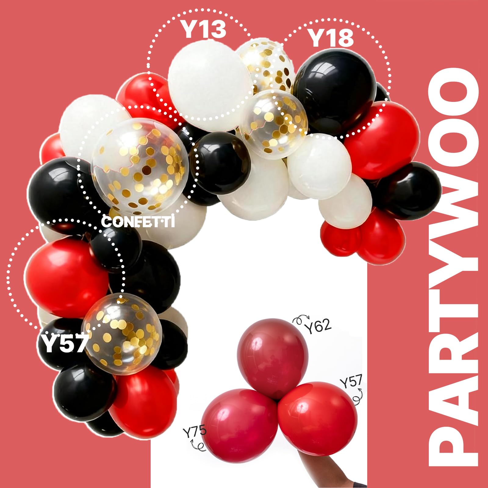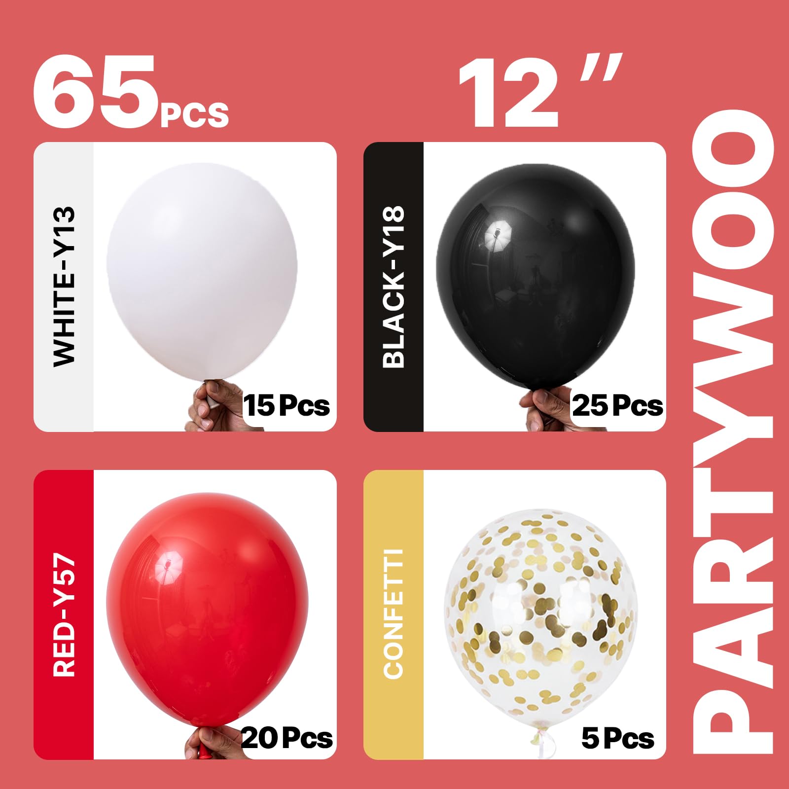 - Package includes: 12 inch black balloons (25 pcs), white balloons (15 pcs), matte red balloons (20 pcs), gold confetti balloons (5 pcs). These red and black balloons can widely used in graduation, baby shower decorations, and make your party bright.