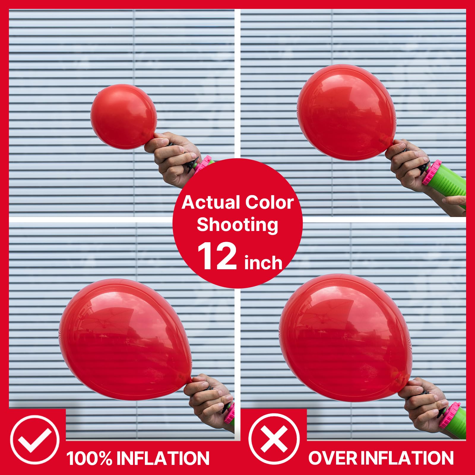 - Package includes: 18 inch red balloons (5pcs), 12 inch red balloons (30pcs), 10 inch red balloons (40pcs), 5 inch red balloons (25pcs), in a solid consistent color. Pay attentions that the 5 inch balloons could NOT float when inflated with HELIUM.