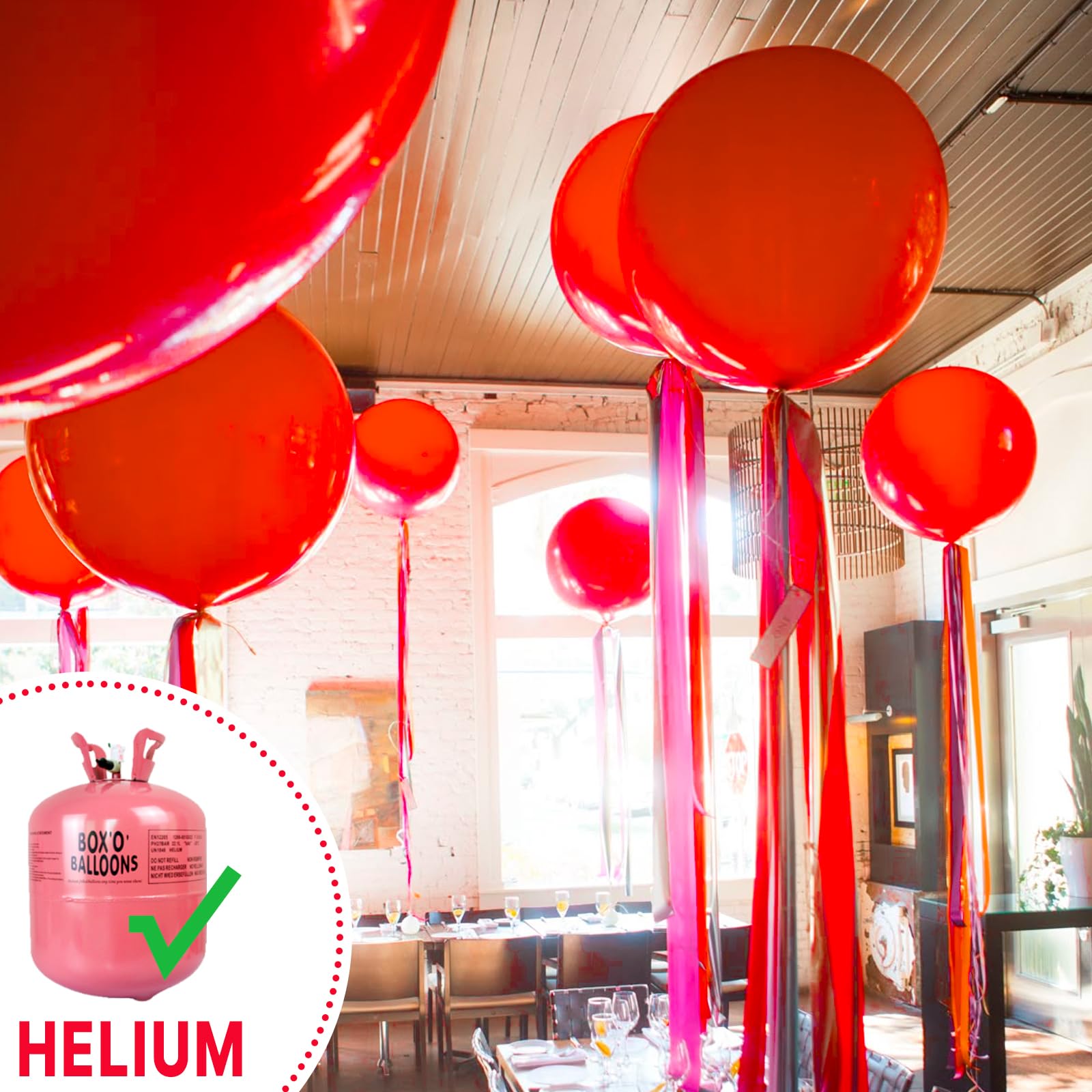 - What To Fill With: Red latex balloons filled with AIR will stay full for up to 72 hours, while with HELIUM will stay full for 3-6 hours. For best float results, fill helium 1-2 hours before your event, can bring joy to birthday, baby shower decorations.