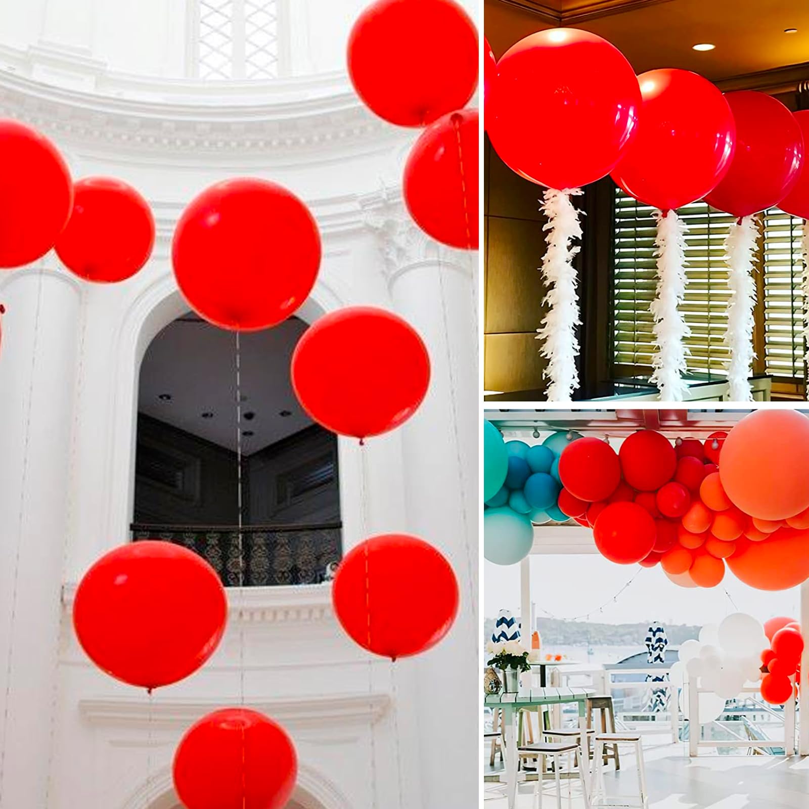 - Package includes: 36 inch red balloons (4 pcs), 5 inch white balloons (4 pcs), ribbons (2 pcs), in a solid consistent color that brings vibrant energy, can widely used in wedding decorations, birthday decorations and baby shower decorations.