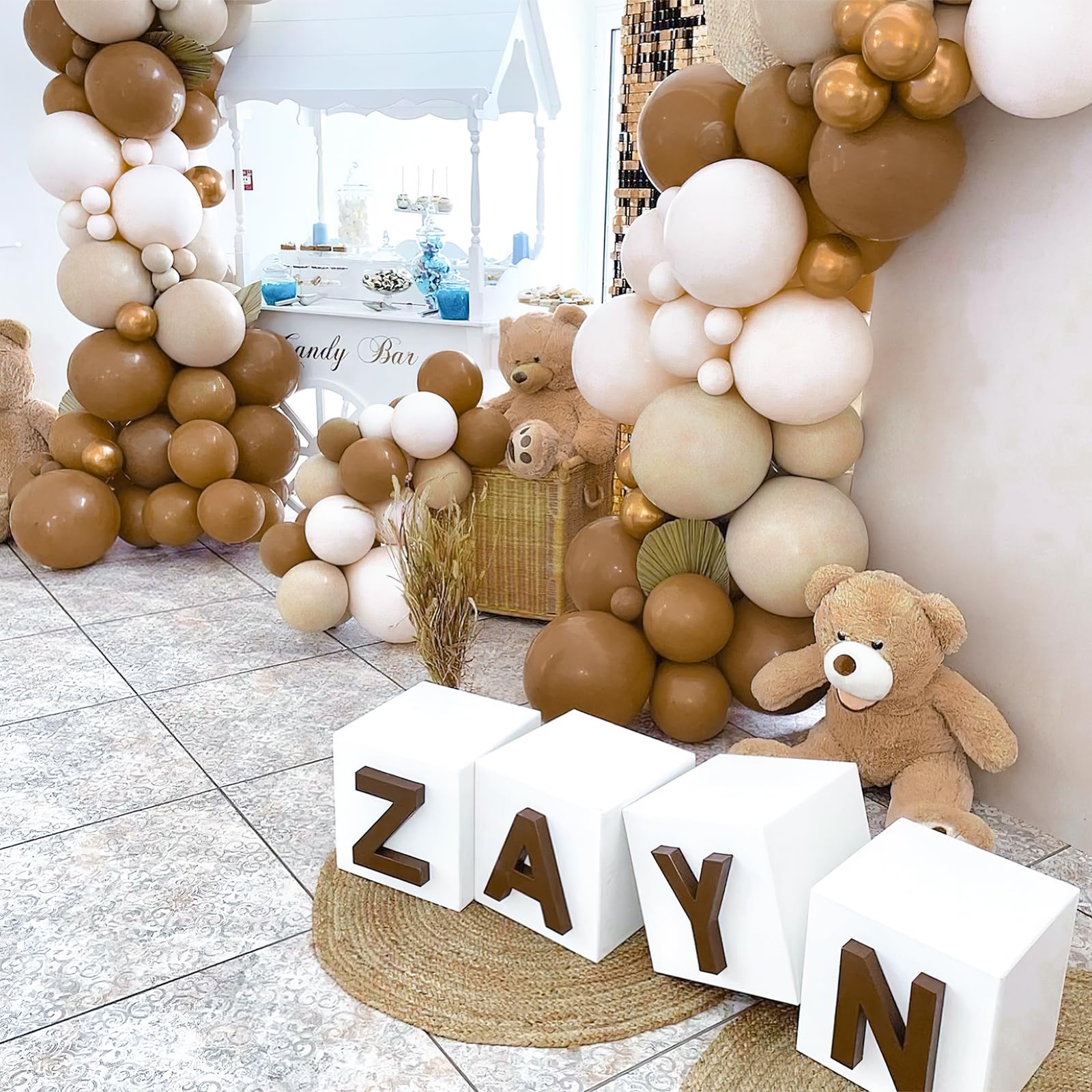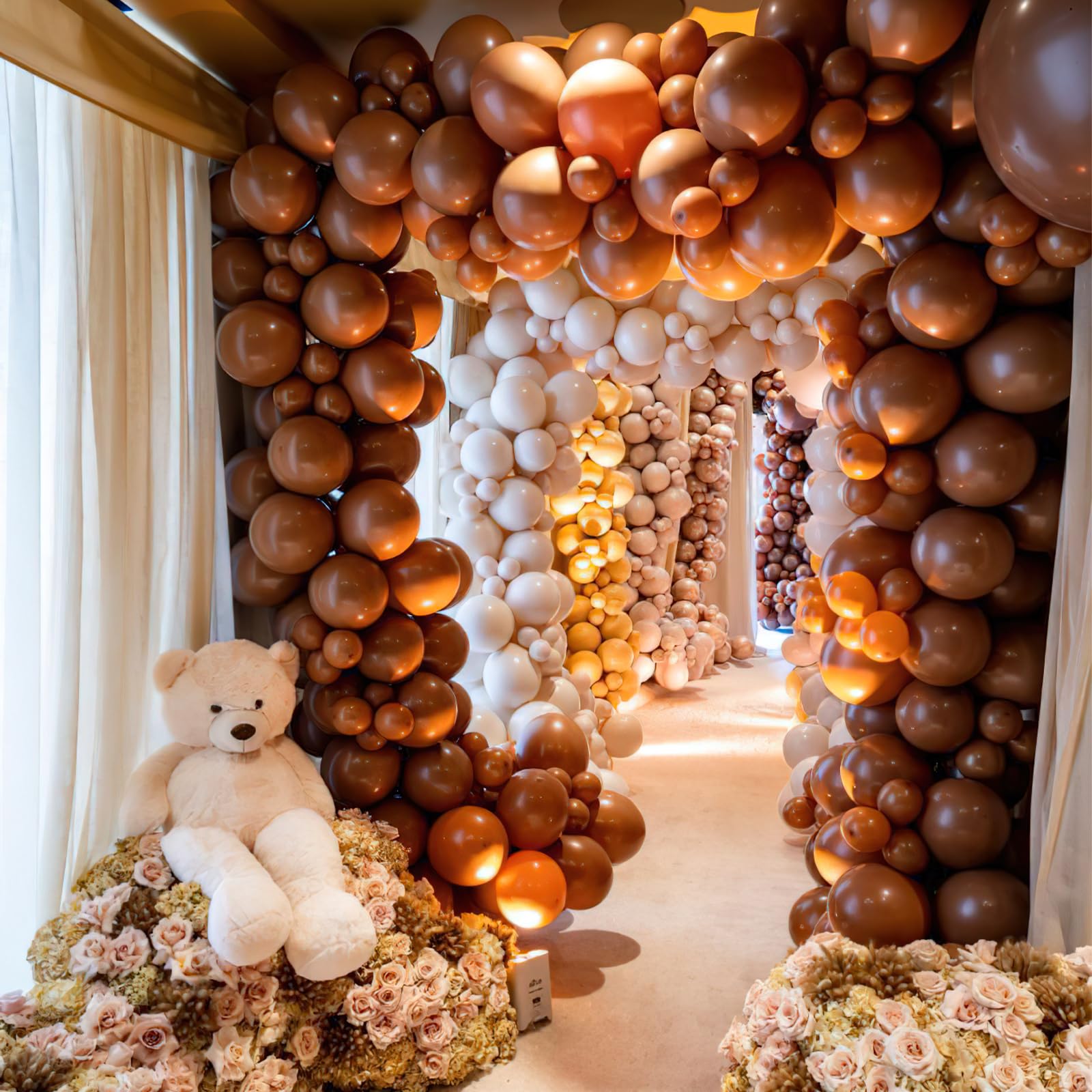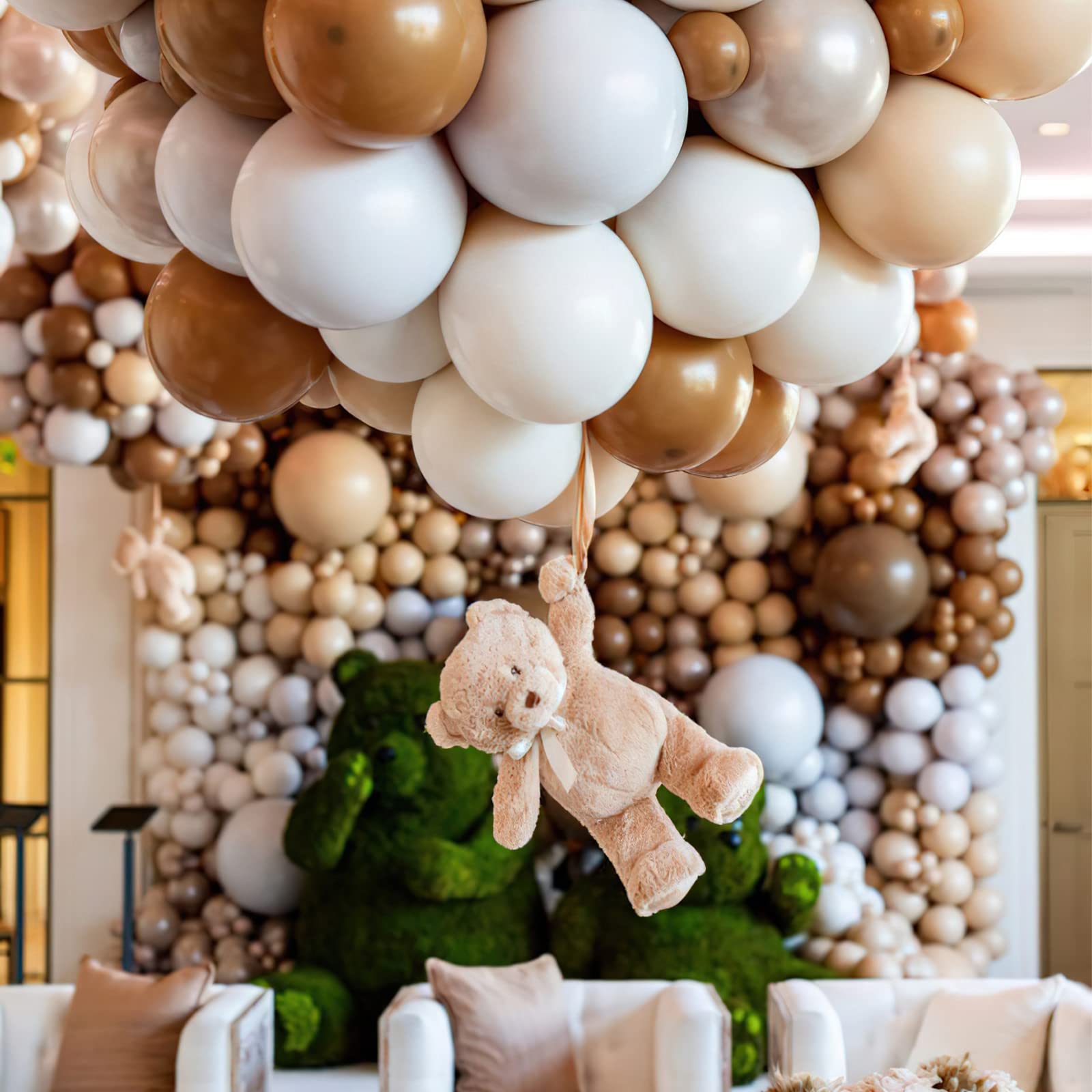 - 100 PCS BROWN BALLOONS DIFFERENT SIZES: 18 inch balloons 6 pcs (white sand x2, tan x2, light brown x2), 12 inch balloons 30 pcs (apricot x10, light brown x10, dark brown x10), 10 inch balloons 30 pcs (white sand x10, apricot x10, tan x10), 5 inch small balloons 35 pcs (apricot x15, light brown x10, dark brown x10), 8.2ft/ 2.5m balloon decorating strip (1)