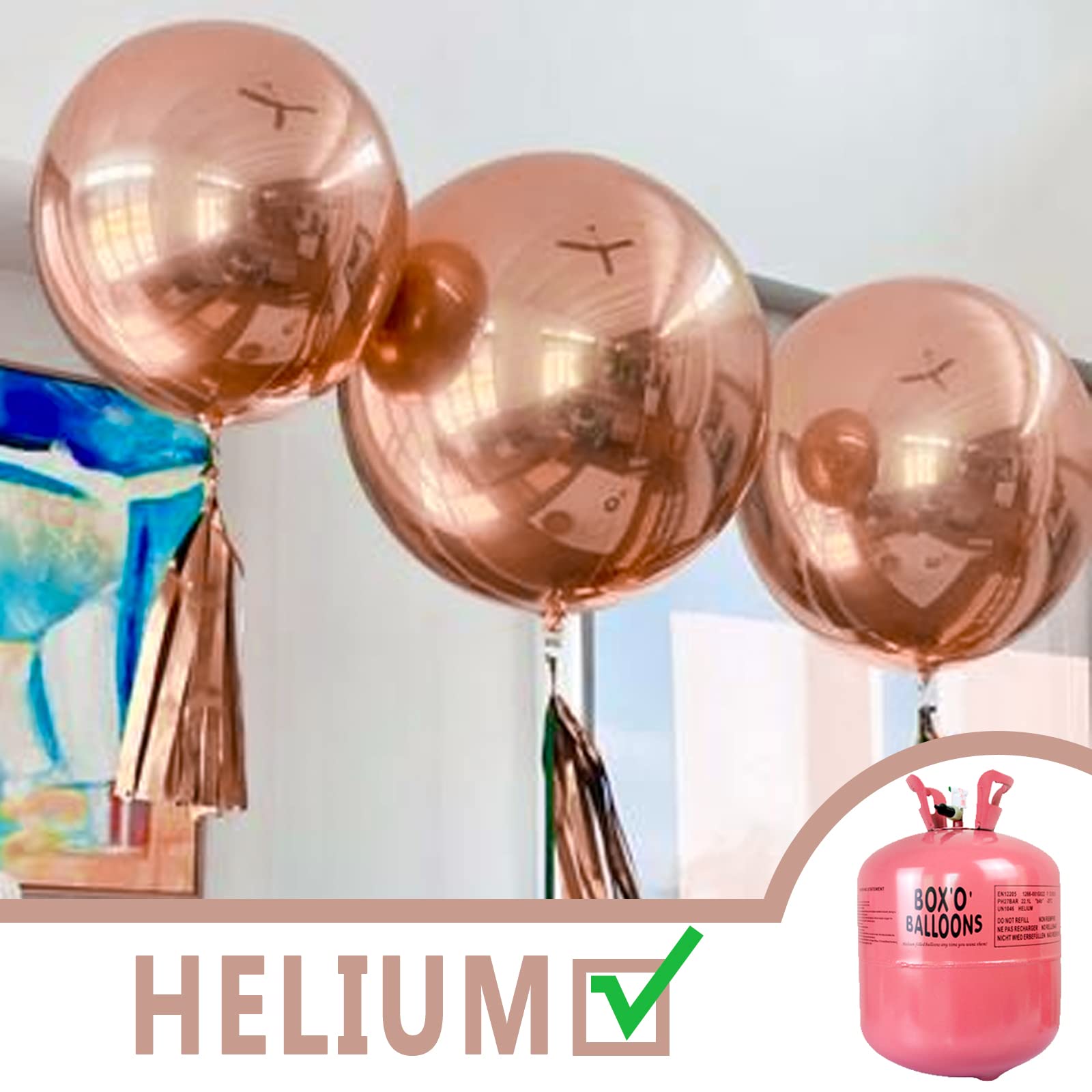 - What To Fill With: Metallic rose gold balloons filled with AIR will stay full for up to 72 hours, while with HELIUM will stay full for 3-6 hours. For best float results, fill helium 1-2 hours before your event, can bring joy to birthday, baby shower.