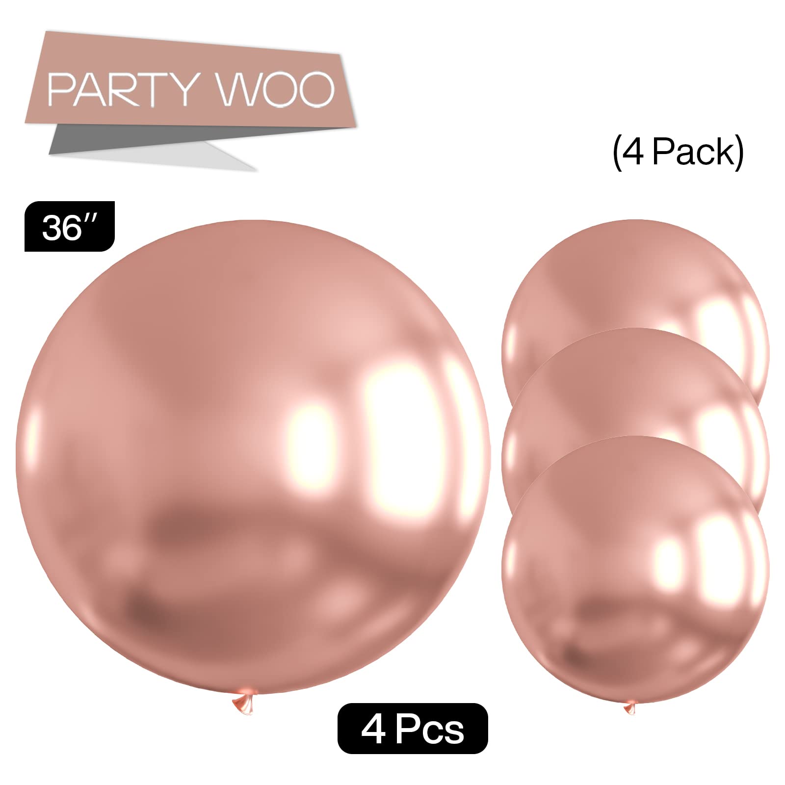 - Package includes: 36 inch rose gold balloons (4pcs), 5 inch white balloons (4 pcs), ribbons (2 pcs), in a solid consistent color that brings vibrant energy, can widely used in wedding decorations, birthday decorations and baby shower decorations.
