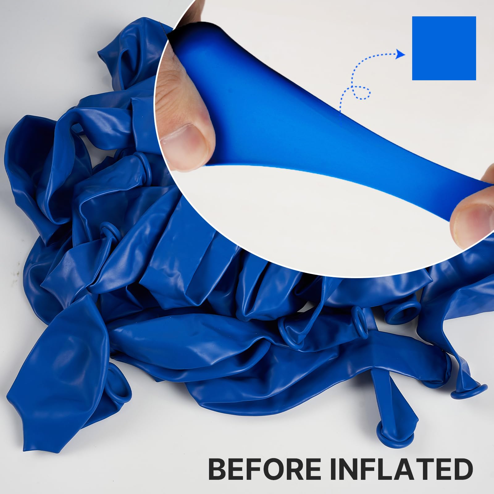 - 100 PCS BLUE BALLOONS DIFFERENT SIZES: Package includes 36 inch balloon (1 pc), 18 inch balloons (3 pcs), 12 inch balloons (20 pcs), 10 inch balloons (20 pcs), 5 inch balloons (56 pcs)
