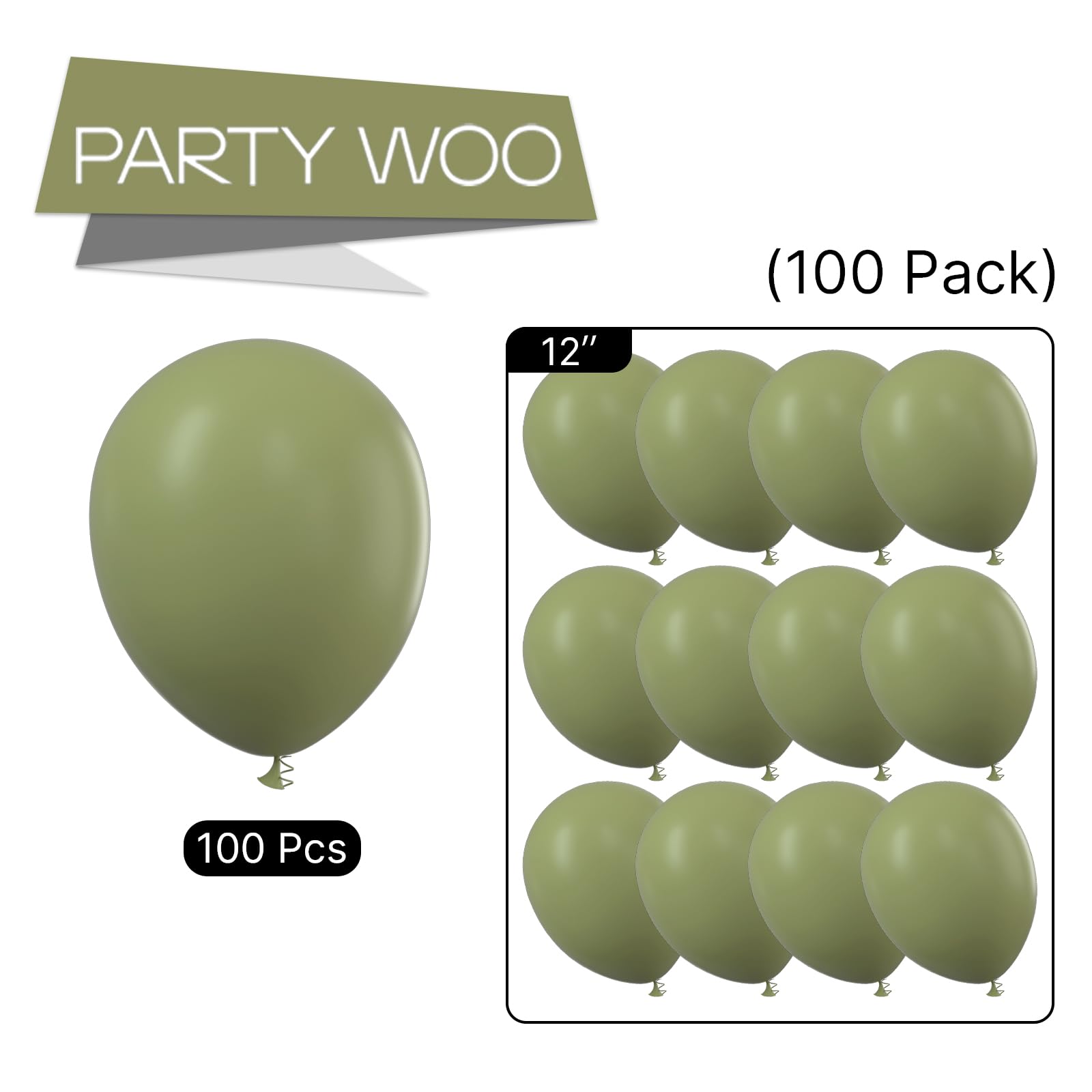 PartyWoo Sage Green Balloons 100 pcs 12 Inch Olive Green for Sage Green Party Olive Balloons Birthday Graduation Safari Jungle Forest Baby Shower Party Decorations Green-F11
