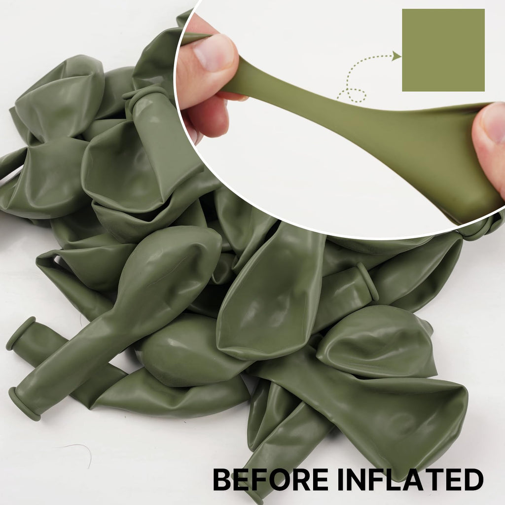 • 100 PCS 12 INCH SAGE GREEN BALLOONS: These sage balloons can be used in olive green party or mix with any color to create a perfect sage green birthday party decorations