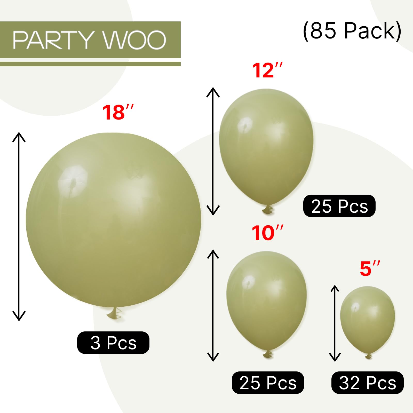 - Package includes: 18 inch sage green balloons (3 pcs), 12 inch sage green balloons (25 pcs), 10 inch sage green balloons (25 pcs), 5 inch sage green balloons (32 pcs), pay attentions that 5 inch balloons could NOT float when inflated with HELIUM.