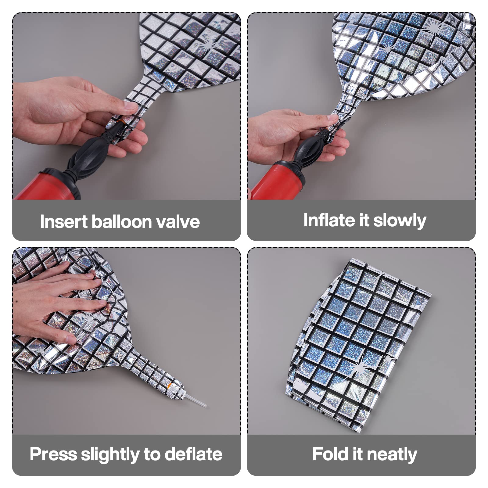 - Simple to Use and Set Up: Inflating these silver disco aluminum balloons, foil balloons, or mirror ball balloons is a breeze—inflate great with standard pumps, and deflation is just as simple for reuse. They save time on birthday and graduation party.