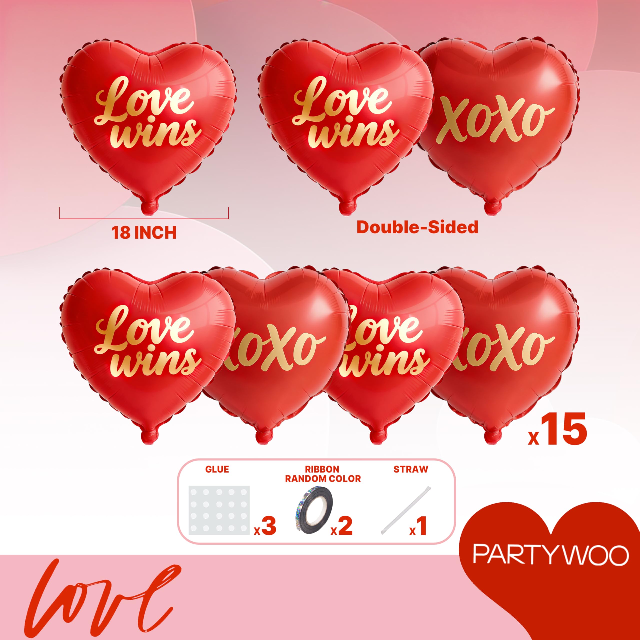- Package Include: You will receive 15pcs 18 inch red heart balloons, on which with XOXO and Love Wins. These red heart balloons can widely used in Valentine's Day decorations, anniversary decorations and engagement party decorations.