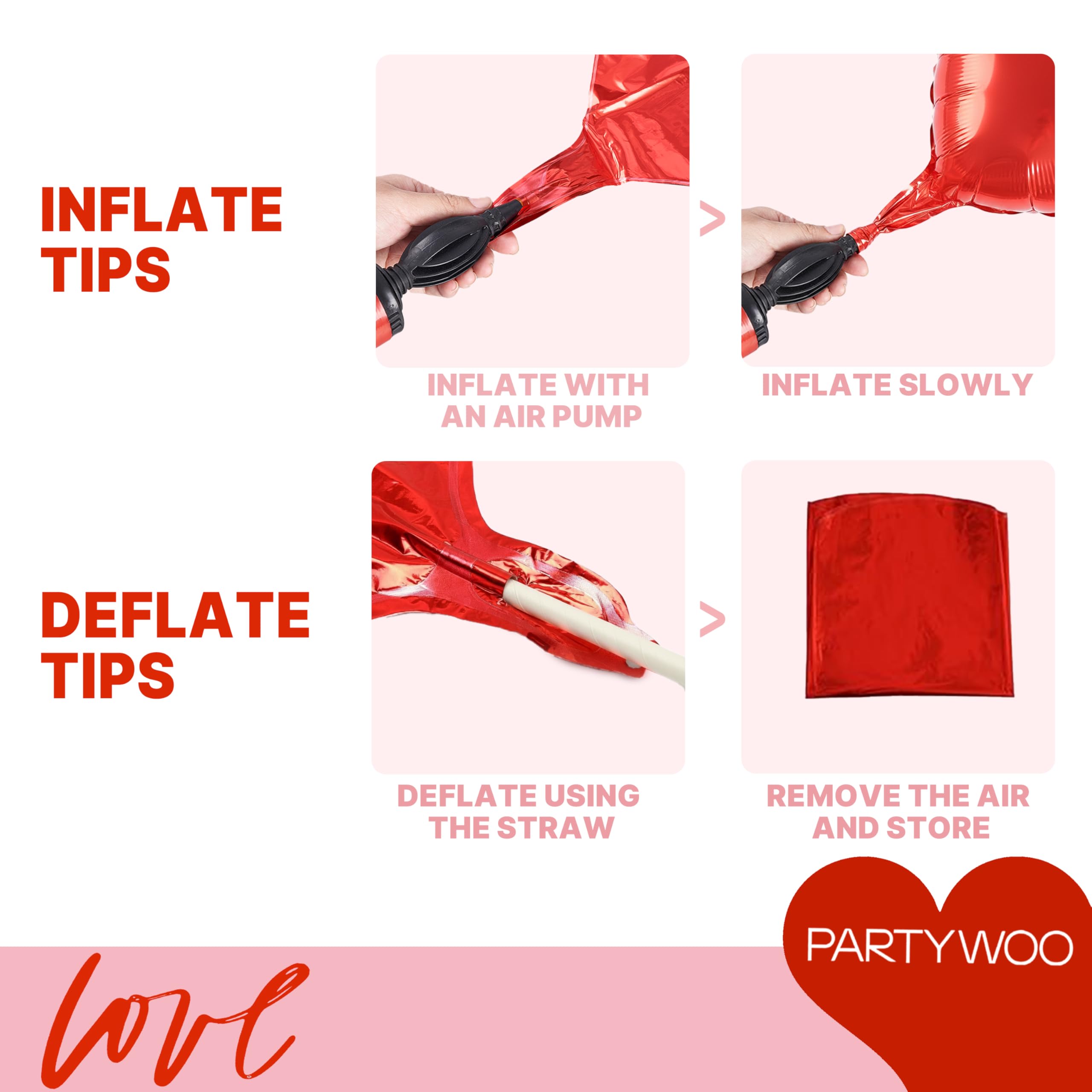 • Simple to Use and Set Up: Inflating these red heart foil balloons is a breeze—inflate great with standard pumps, and deflation is just as simple for reuse. They save time on Valentine's Day decorations, proposal decorations and engagement decorations