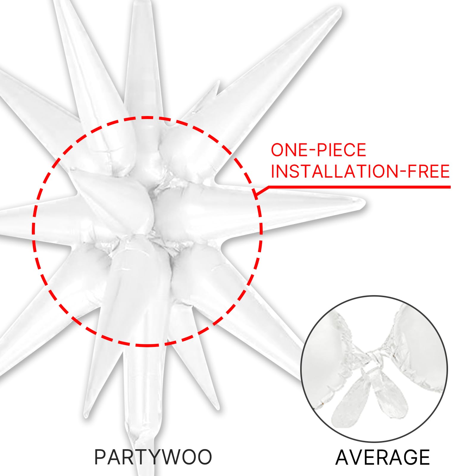 - Create the Dramatic setting:These white spike balloons are made of aluminum film material, making the white foil balloons look shining, exquisite and sturdy. The shining and exquisite design adds more color to your baby shower and birthday party