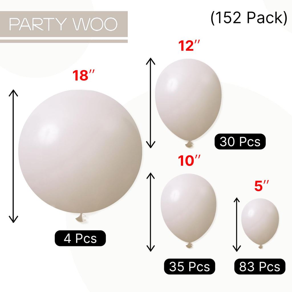 PartyWoo White Sand Balloons 152pcs Different Sizes of 18 12 10 5 Inch Off White Beige Cream Ivory Boho Neutral Balloon Arch Kit Garland for Wedding Baby Shower Birthday Party Decorations White-F12